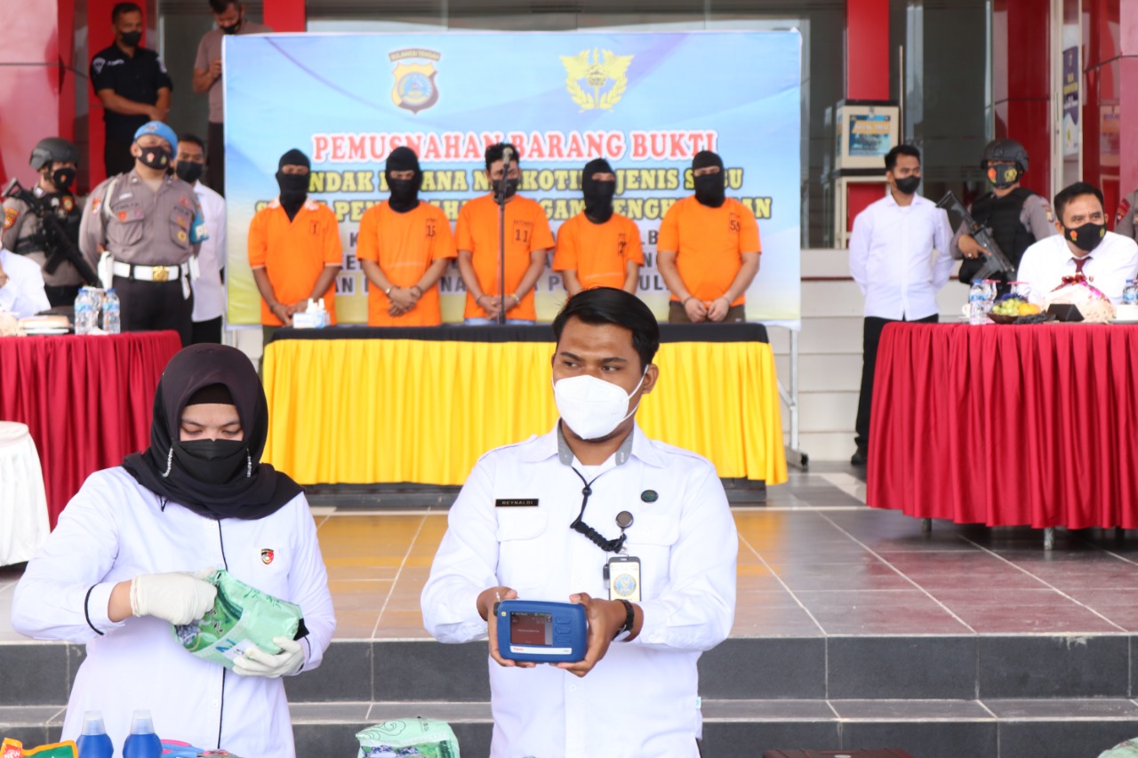 terpisah Kabidhumas Polda Sulteng Kombes Pol Didik Supranoto.,S.I.K.,M.H melalui Kasubbid Penmas Kompol Sugeng Lestari mengatakan bahwa narkotika jenis sabu yang dimusnakan oleh Polda Sulteng hari ini telah mendapatkan penetapan status barang bukti dari pengadilan dan dimusnakan dengan cara direbus dan air rebusan di buang kedalam septiteng.