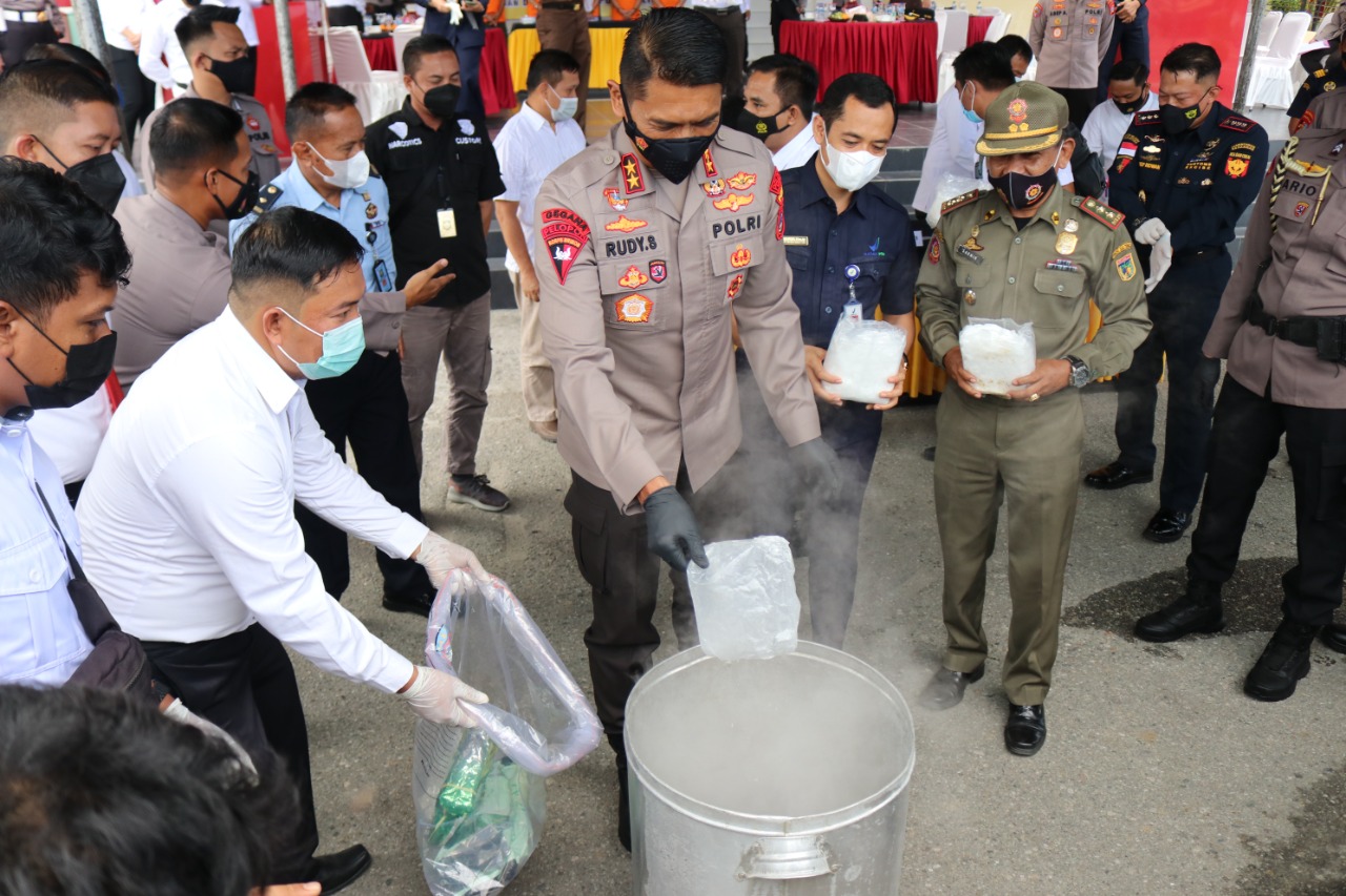 dalam sambutannya Kapolda Sulteng Irjen Pol Drs.Rudi Sufahriadi menerangkan bahwa narkotika yang dimusnakan hari ini merupakan hasil pengungkapan Ditresnarkoba Polda Sulteng bekerja sama dengan pihak Bea dan Cukai pada 25 Desember 2021 silam di Kec. Sojol, Kab.Donggala.