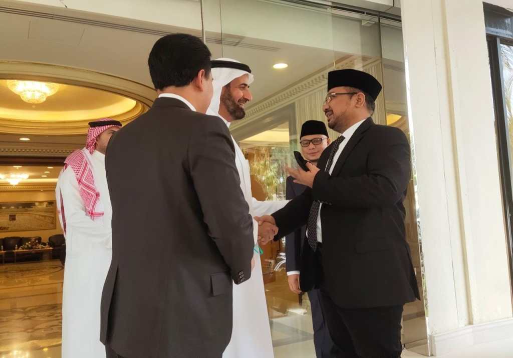 Menteri Agama Yaqut Cholil Qoumas bertemu dengan Menteri Haji dan Umrah Arab Saudi Tawfiq F. Al-Rabiah. Pertemuan berlangsung di Kantor Kementerian Haji dan Umrah, Jeddah, Arab Saudi, Minggu, 20 Maret 2022.