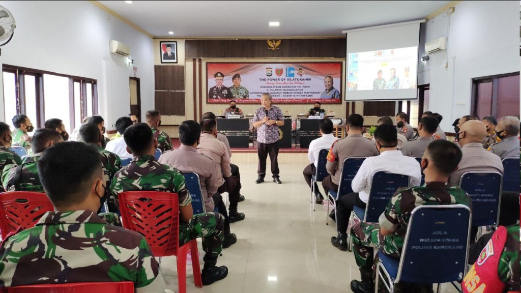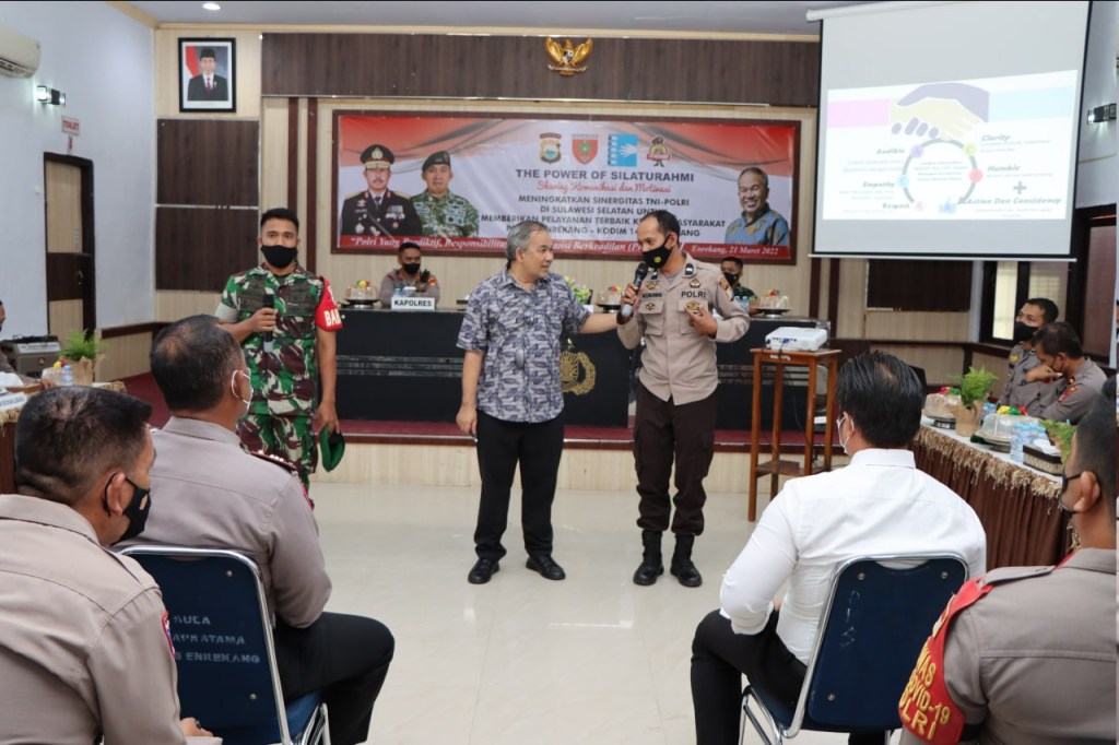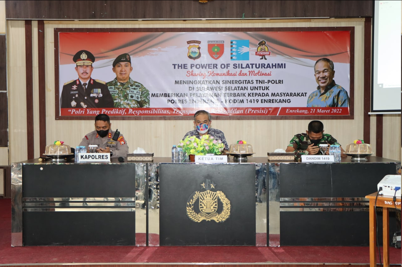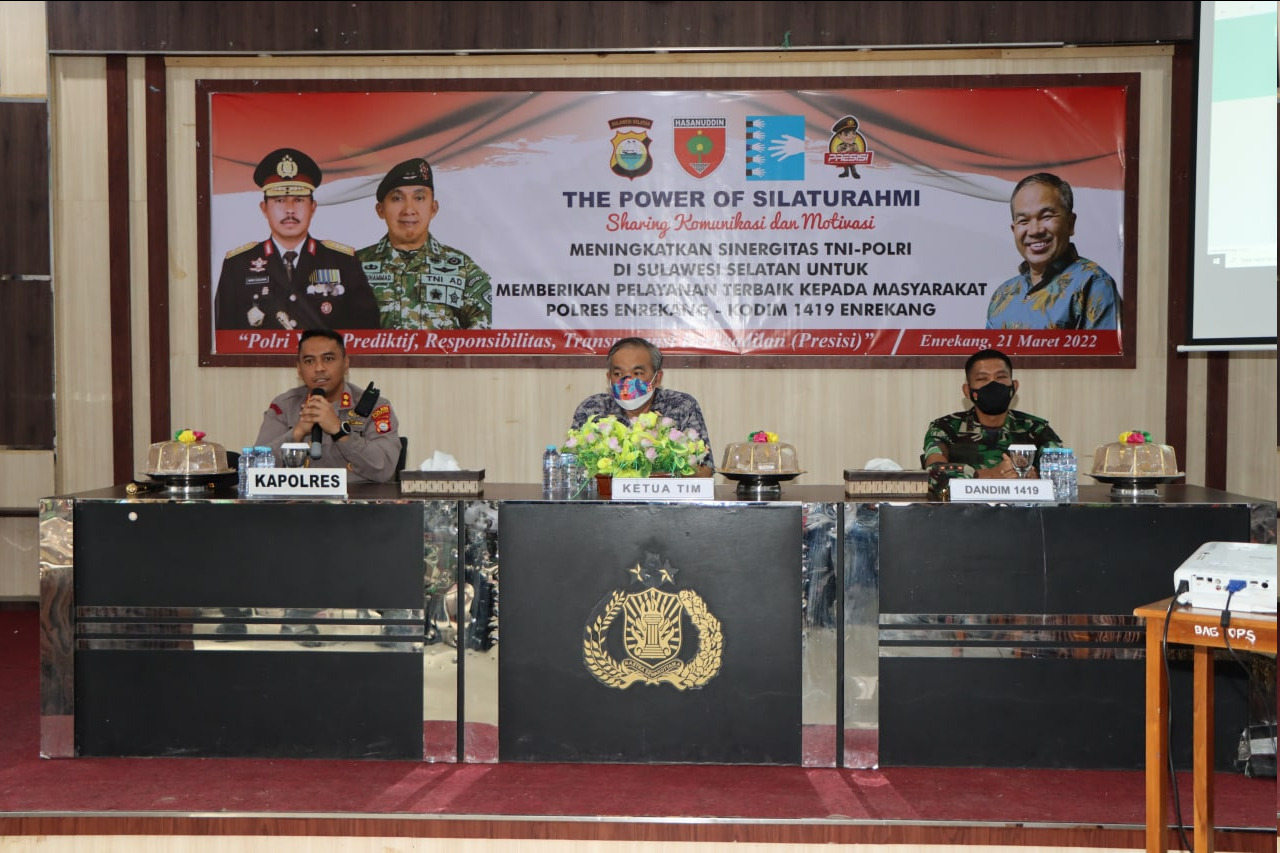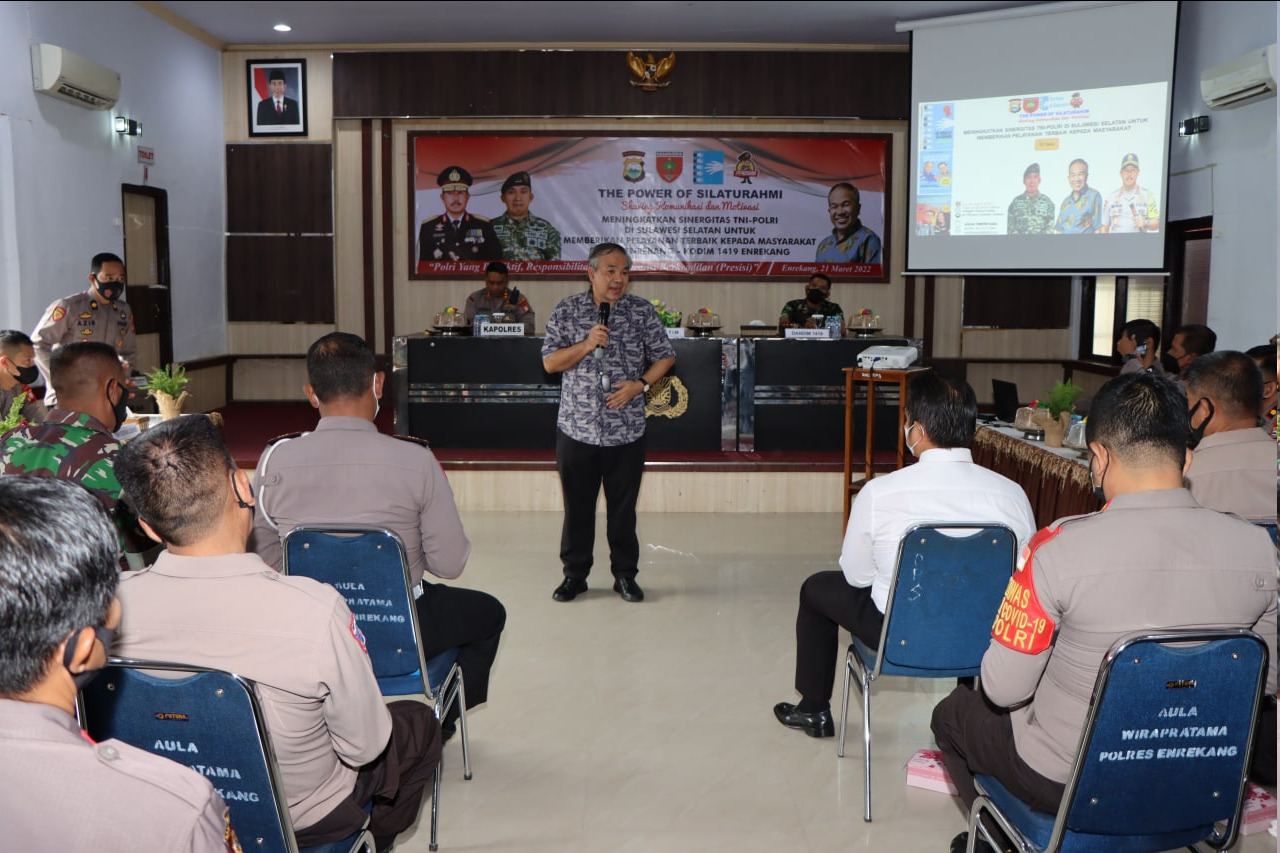 Dalam sambutannya, Kapolres Enrekang AKBP Arief Doddy Suryawan, S.IK mengatakan selamat datang Bapak DR. Aqua Dwipayana yang telah berkenan hadir di Polres Enrekang dalam acara Komunikasi dan Motivasi Guna Meningkatkan sinergitas TNI-POLRI di Sulawesi Selatan untuk memberikan pelayanan terbaik kepada masyarakat Polres Enrekang – Kodim 1419 Enrekang.