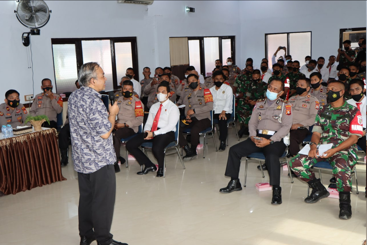 Polisi dan TNI harus lebih humanis dalam memberikan pelayanan kepada masyarakat, tidak berbelit-belit. Penegasan itu disampaikan Pakar Komunikasi dan Motivator Nasional Dr Aqua Dwipayana pada Sharing Komunikasi dan Motivasi.