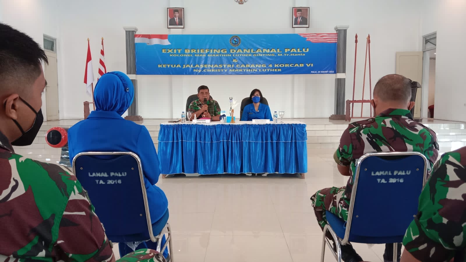 Usai menerima Surat Telegram Kepala Staf TNI AL (Kasal) tentang Mutasi Jabatan di lingkungan TNI AL pada awal Maret 2022, setelah Satu Tahun menjabat Komandan Pangkalan TNI AL (Lanal) Palu Kolonel Marinir Marthin Luther Ginting, M.Tr.Hanla dengan didanpingi Ketua Jalasenastri Cabang 4 Korcab VI DJA II Ny. Christy Normawati Ginting melaksanakan Exit Breefing di hadapan seluruh Prajurit Lanal Palu beserta keluarga Prajurit.