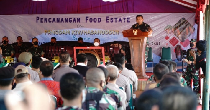 Bahwasanya pencanangan Food Estate Kodam Hasanuddin ini dalam rangka mendukung pemerintah untuk mewujudkan lahan pangan sebagai pilar perekonomian bangsa dengan memanfaatkan sumber daya alam (SDA) yang ada di wilayah.