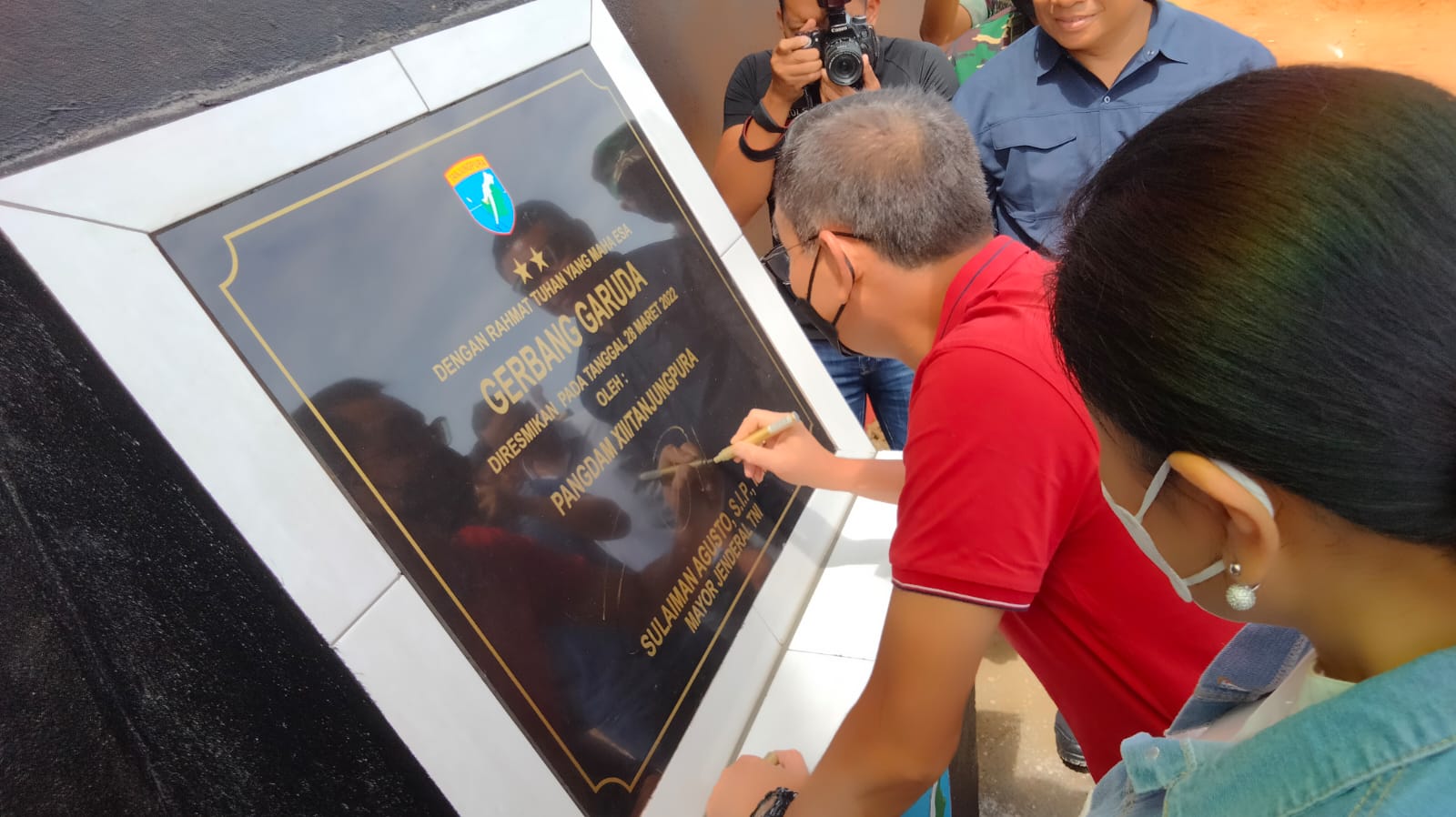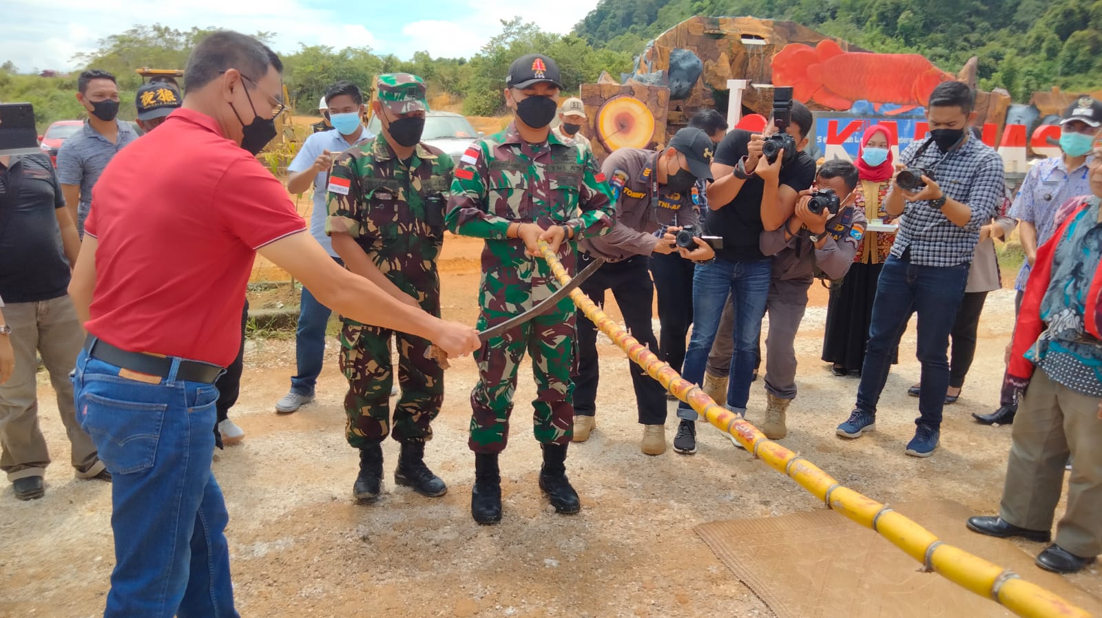Kegiatan ini diakhiri dengan penanda tanganan gerbang Garuda wisata Lembah Bukit Semugang serta foto bersama ibu-ibu Persit KCK Daerah XII/Tpr. Tetap mengedepankan protokol kesehatan.