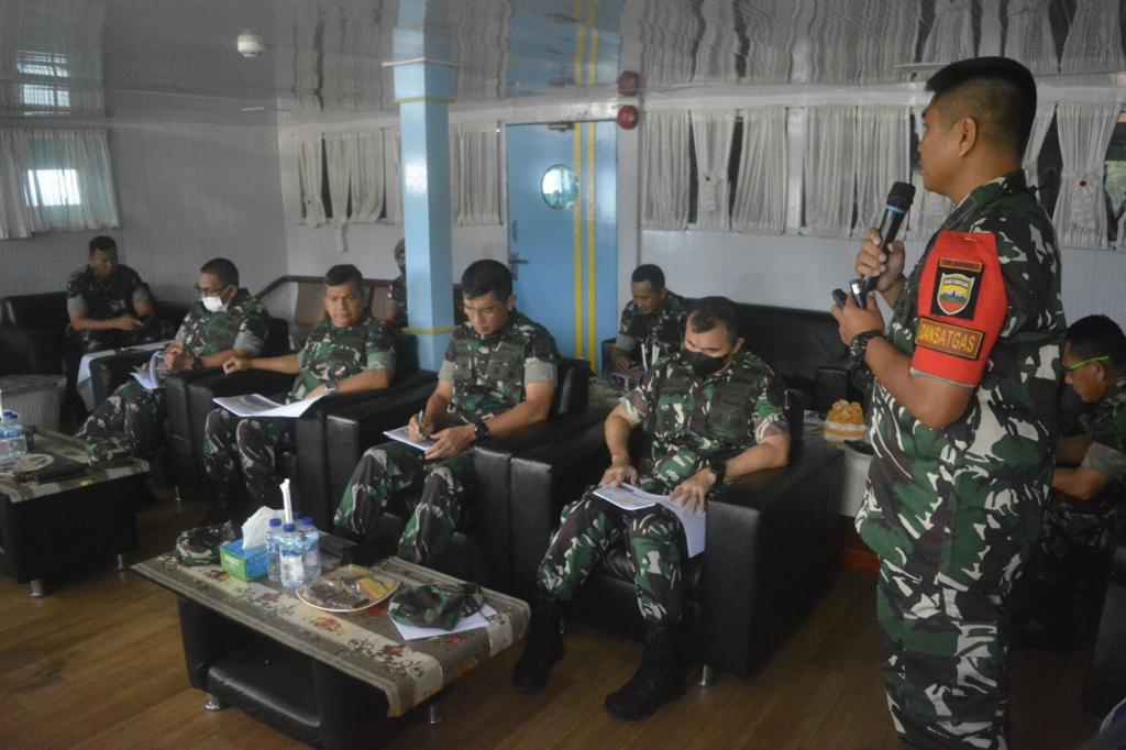 Dalam perjalanan ke Pos Ramil Kairatu menggunakan Kapal Feri Dansatgas Kodim Maluku Letkol Arh Rendra Febrandari Suparman SIP menjelaskan tentang kondisi pos secara umum dan apa yang sudah dilaksanakan oleh Satgas, selama hampir 4 bulan sejak melaksanakan tugas operasi perbantuan Pemda.