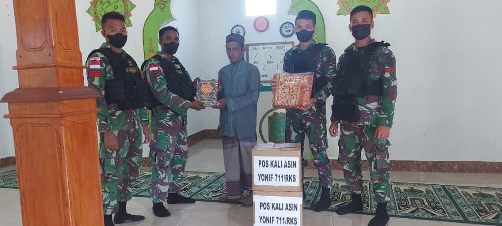 ‘”Melihat di Masjid ini yang masih kurang perlengkapan untuk beribadah maka anggota Satgas Pos Kaliasin tergerak untuk memberikan bantuan demi menunjang dan mendukung pelaksanaan kegiatan ibadah di masjid,”ujarnya.
