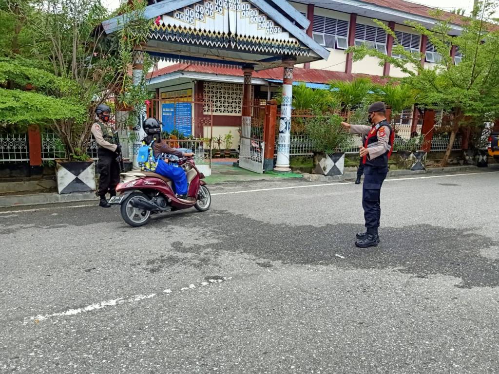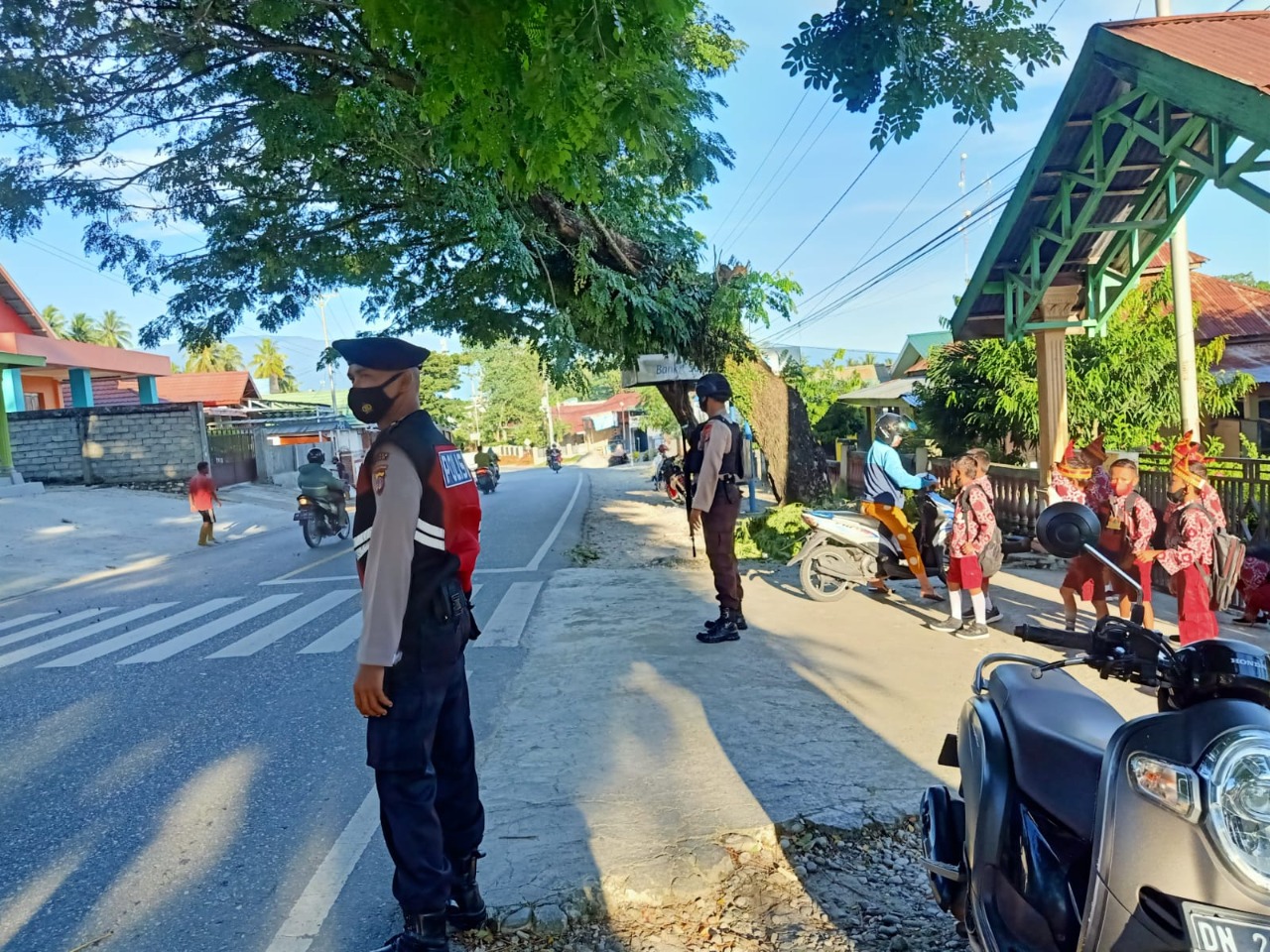 Sat Sabhara Polres Poso menggelar kegiatan strong point dengan melakukan penjagaan dan pengaturan lalulintas di seluruh titik rawan lakalantas, rawan kemacetan, pusat keramaian serta lokasi persekolahan dan kedinasan pemerintah daerah. Senin (28/03/2022)
