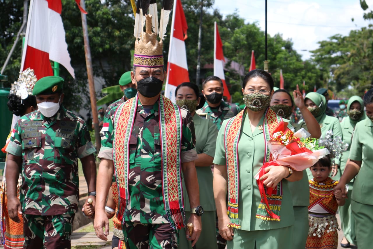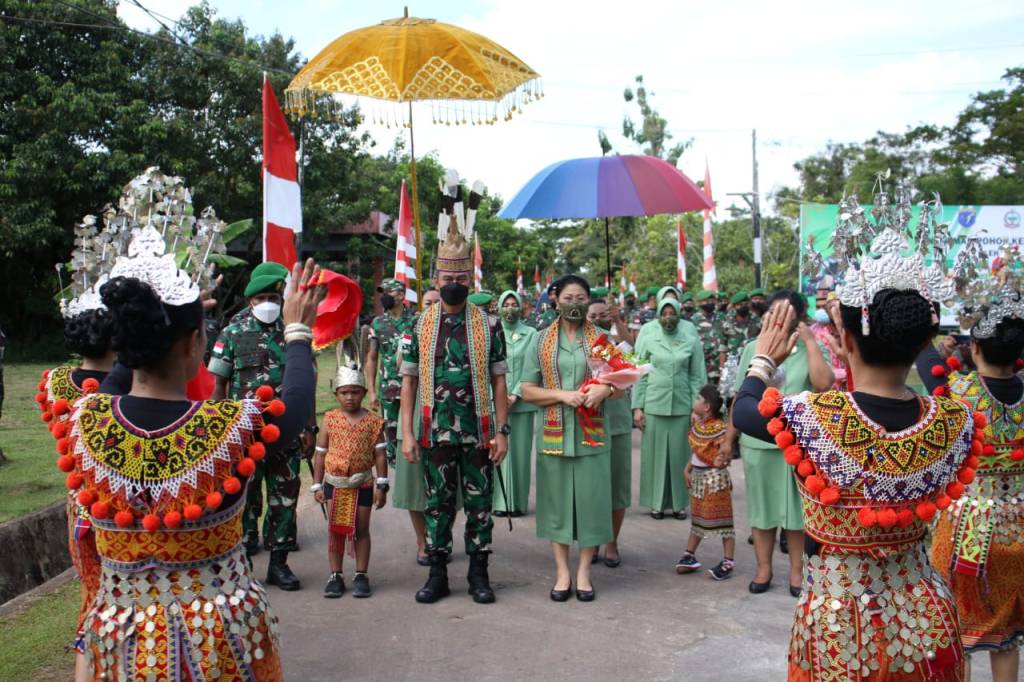 Panglima Kodam XII/Tanjungpura, Mayjen TNI Sulaiman Agusto, S.I.P., M.M., didampingi Ketua Persit Kartika Chandra Kirana XII/Tpr, Ny. Helly Sulaiman Agusto serta rombongan mengunjungi Kodim 1206/Putussibau, Jalan Piere Tendean, Kapuas Hulu.