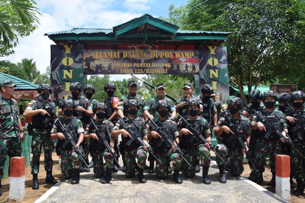 Penegasan hal ini disampaikan Pangdam I/BB, Mayjen TNI Achmad Daniel Chardin, SE, MSi, bersama rombongan yang didampingi Danrem 174/ATW, Brigjen TNI E Reza Pahlevi, SE, selaku Dankolakops saat mengunjungi Pos Wamp Satgas Pamtas RI-PNG Yonif 123/RW di wilayah Selatan Papua, Kab. Merauke, Minggu (27/03/2022).