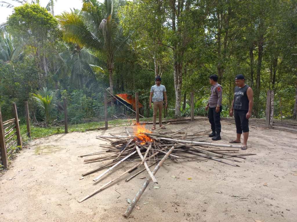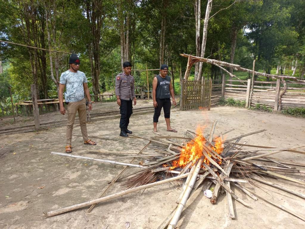 Polsek Banggai melakukan pembersihan arena sabung ayam yang berlokasi di sekitar kompleks Pemancar Kelurahan Dodung Kecamatan Banggai, Kabupaten Banggai Laut (Balut). Rabu (30/03/2022) jam 15.20 wita.
