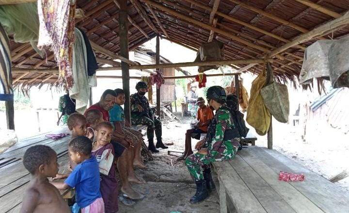 Sebagai sarana mempererat tali silaturahmi dengan masyarakat, Pos Arso Kota Satgas Pamtas RI-PNG Yonif 711/Rks, melaksanakan anjangsana ke rumah – rumah warga di Kampung Waris, Kecamatan Arso Timur, Kabupaten Keerom, Rabu (30/03/2022).