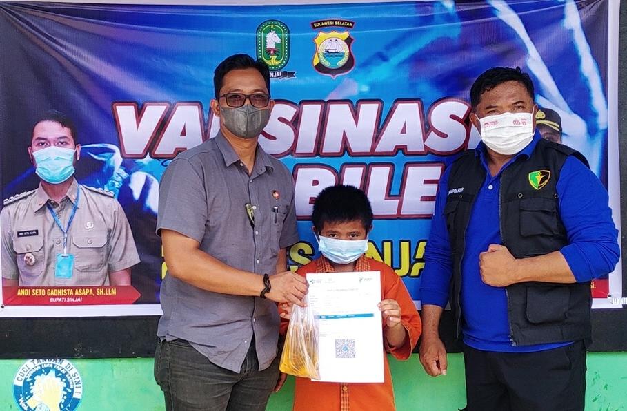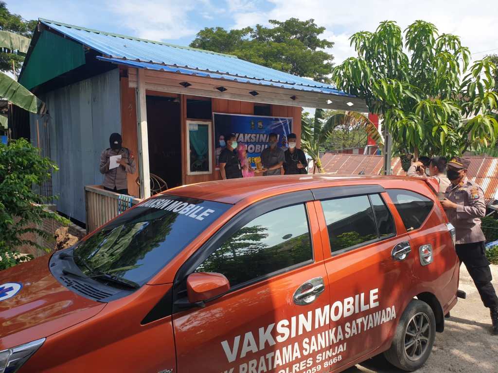 Dengan mengendarai mobile vaksinasi keliling Klinik Sanika Satyawada Polres Sinjai menyambangi warga door to door. Hal ini mempermudah akses masyarakat untuk mendapat fasilitas vaksin,” Kata Kasat Binmas.
