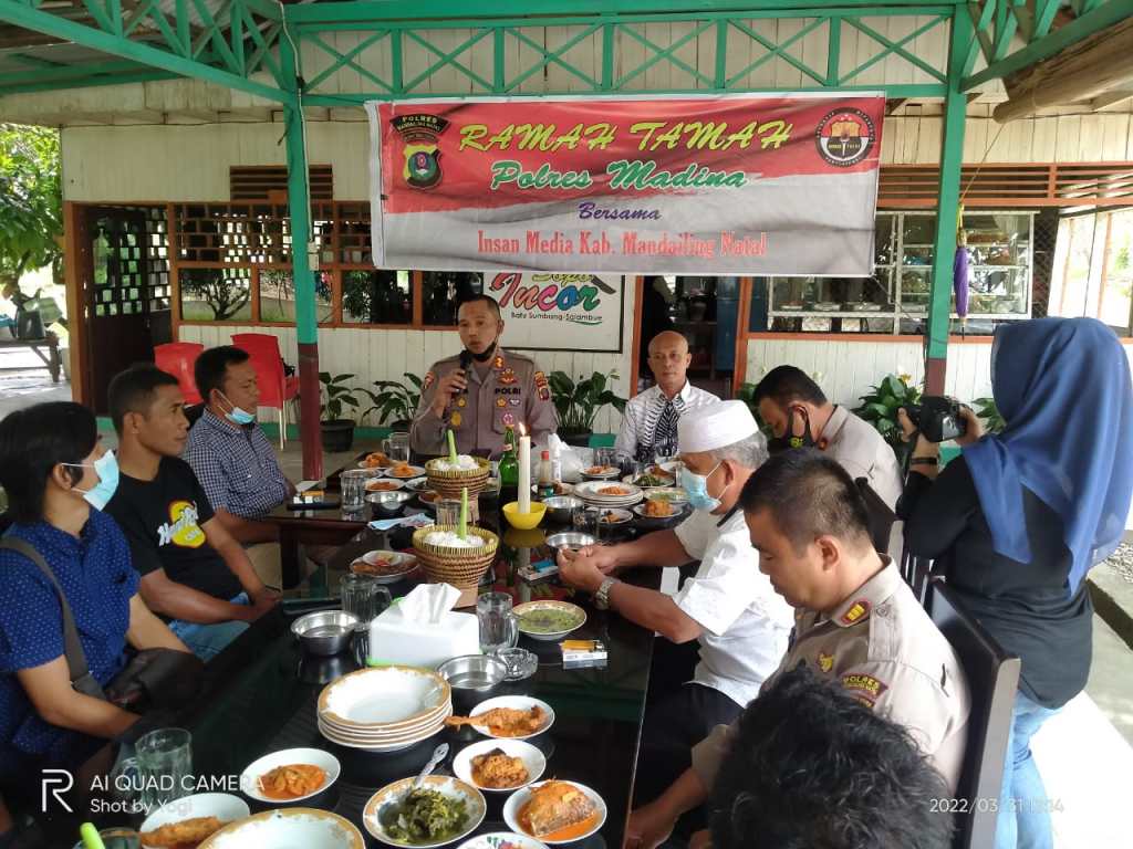 Kapolres Madina AKBP H.M Reza Chairul A.S, S.I.K, S.H, M.H pada hari Kamis (31/3/2022), sekira pukul 12.51 WIB, melalui personel subbag humas Polres Madina menggelar acara ramah tamah dengan Insan Media di rumah makan incor yang berada di desa Salambue Kec. Panyabungan Kabupaten Mandailing Natal (MADINA).