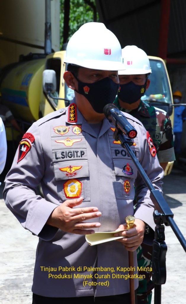 Kapolri Jenderal Listyo Sigit Prabowo meninjau langsung pabrik minyak goreng ke PT. Tunas Baru Lampung (PT. TBL), Palembang, Sumatera Selatan (Sumsel), Jumat (1/4/2022). Kegiatan itu untuk memastikan ketersediaan dan stabilitas harga dari minyak goreng.