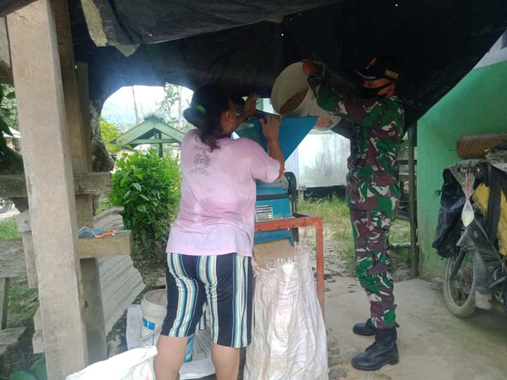 Dikatakannya ibu Sofyan selaku pemilik padi”, Sewaktu Nugal Padi, panen padi, pemindahan padi dari ladang hingga menggiling padi ke mesin pun di bantu oleh bapak Satgas”,kami sangat mengapresiasi sekali atas bantuan dari bapak-bapak Satgas,kami sangat terbantukan”,padi yang kami giling di mesin padi untuk mendapatkan beras biar bisa di makan oleh keluarga kami”, Pungkasnya.