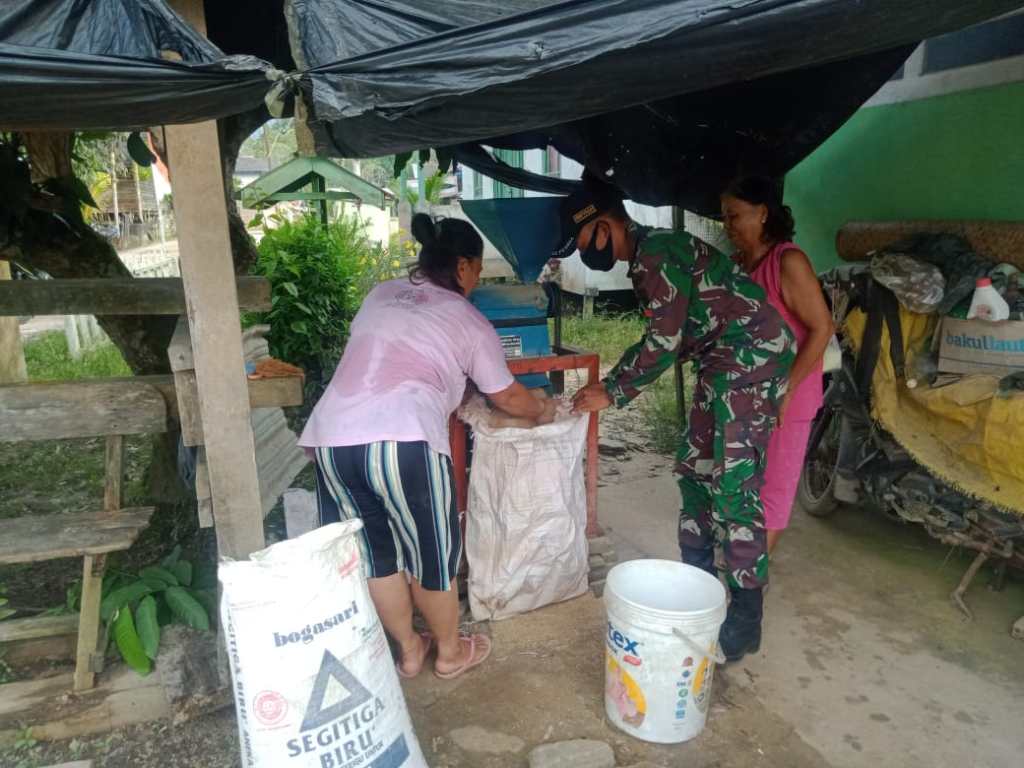 Serda Parlin beserta dua rekannya”, Kagiatan ini dalam rangka dukung ketahanan pangan untuk warga, kehadiran kami selalu ditengah-tengah masyarakat, sekarang ini kami membantu menggiling Padi untuk menghasilkan beras”, harapannya beras yang sudah di giling ini bisa di gunakan oleh warga untuk mencukupi kebutuhan pokok mereka beberapa bulan kedepan”, imbuhnya.