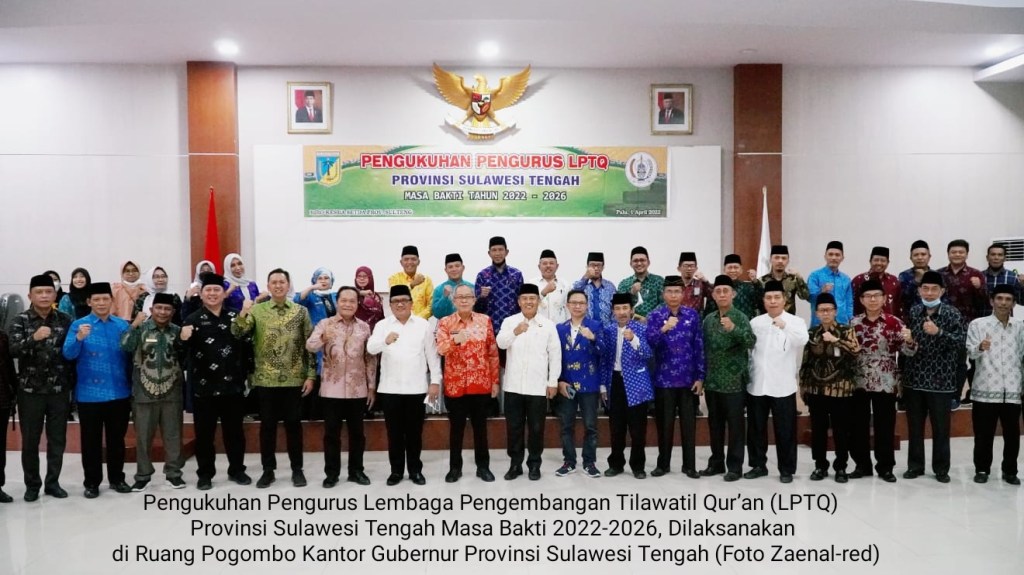 Pengukuhan Pengurus Lembaga Pengembangan Tilawatil Qur’an (LPTQ) Provinsi Sulawesi Tengah Masa Bakti 2022-2026, Dilaksanakan di Ruang Pogombo Kantor Gubernur Provinsi Sulawesi Tengah Pada Hari Jum’at (01/04/2022).