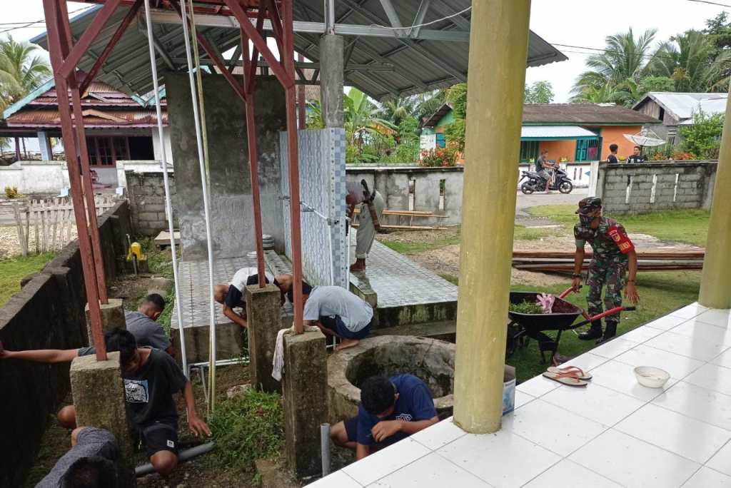 Dalam rangka menyambut bulan suci Ramadhan 1443 H/2022, anggota Koramil 1308-09/Lobangkurung Kodim bersama warga masyarakat melaksanakan kerja bakti gotong royong pembersihan di Masjid Al-Irsyad yang bertempat di Desa Lipulongo Kec. Labobo Kab. Banggai Laut. Sabtu (02/04/2022).