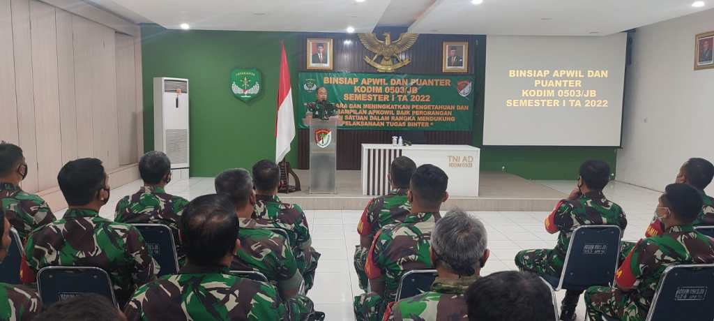 Kodim 0503/Jakarta Barat melaksanakan kegiatan Pembinaan Kesiapan Dan Kemampuan Teritorial Binsiap Apwil dan Puanter di Aula Makodim 0503/JB Jalan Letjen S. Parman No. III Rt. 03/08, Kel. Tomang, Kec. Gropet. Jakarta Barat. Rabu (30/3).