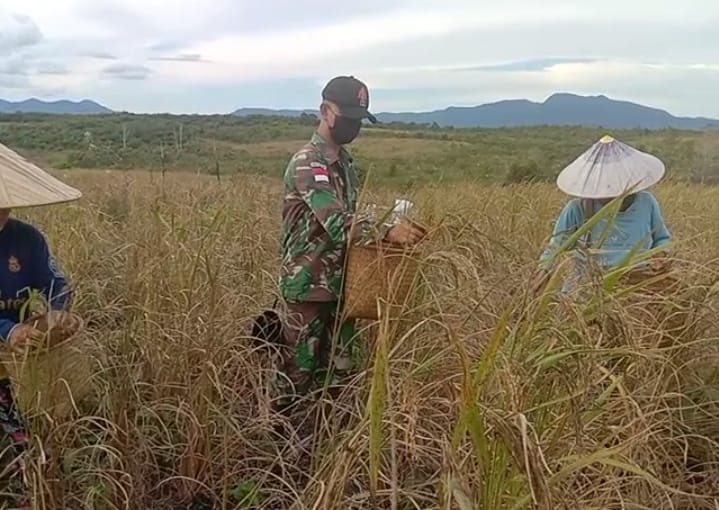 Serda Arisco beserta tiga rekannya”, kehadiran satgas harus menjadi contoh dan tauladan bagi masyarakat serta harus di tengah-tengah masyarakat,ini Panen terakhir kami bantu panen padi darat pak Yusin”, harapannya persediaan padi yang cukup bisa untuk memenuhi kebutuhan pokok bagi keluarga nya untuk beberapa bulan kedepan”, pungkasnya.