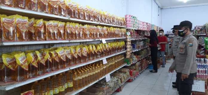 Polsek Kandat Polres Kediri meninjau ketersediaan minyak goreng di sejumlah pedagang wilayah Kecamatan Kandat, Kabupaten Kediri, Minggu (3/4/2022). Pengecekan minyak goreng itu bertujuan untuk mengetahui stok di bulan ramadan tercukupi.