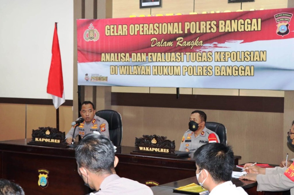 Kapolres Banggai AKBP Yoga Priyahutama SH, SIK, MH, memimpin Gelar Operasional (GO) bulan April tahun 2022 di Aula Rupatama, Mapolres Banggai, Rabu (6/4/2022).