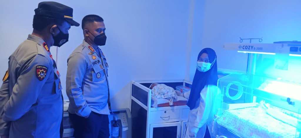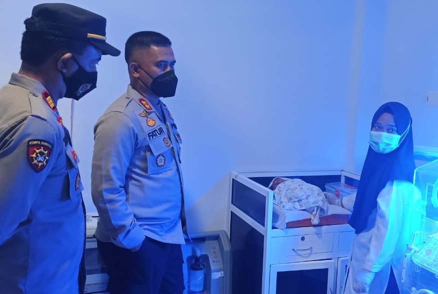 Kapolres Maros AKBP Fatchur didampingi Kapolsek Lau mengecek kondisi bayi di RSUD Dr. Palaloi Maros (Foto-red)