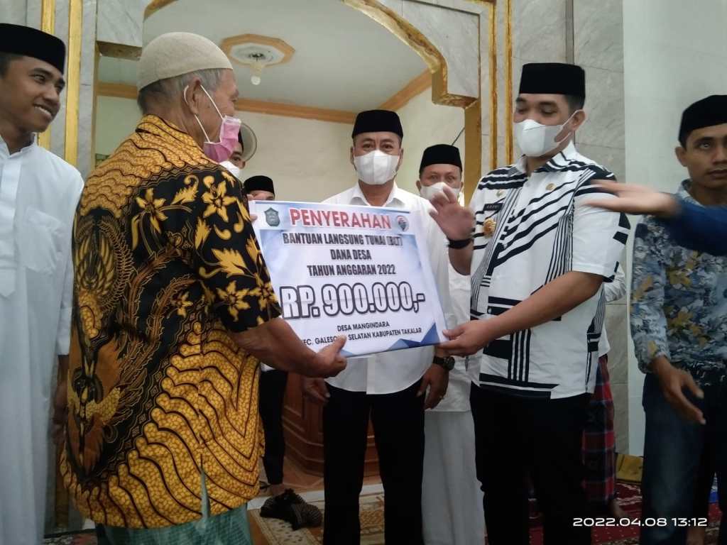 Penyerahan BLT oleh sekda Takalar, yang selain disaksikan oleh kepala desa, juga hadir mendampingi sekda H. Hasbi dan Camat Galesong Selatan, H Sahabuddin Sikki.