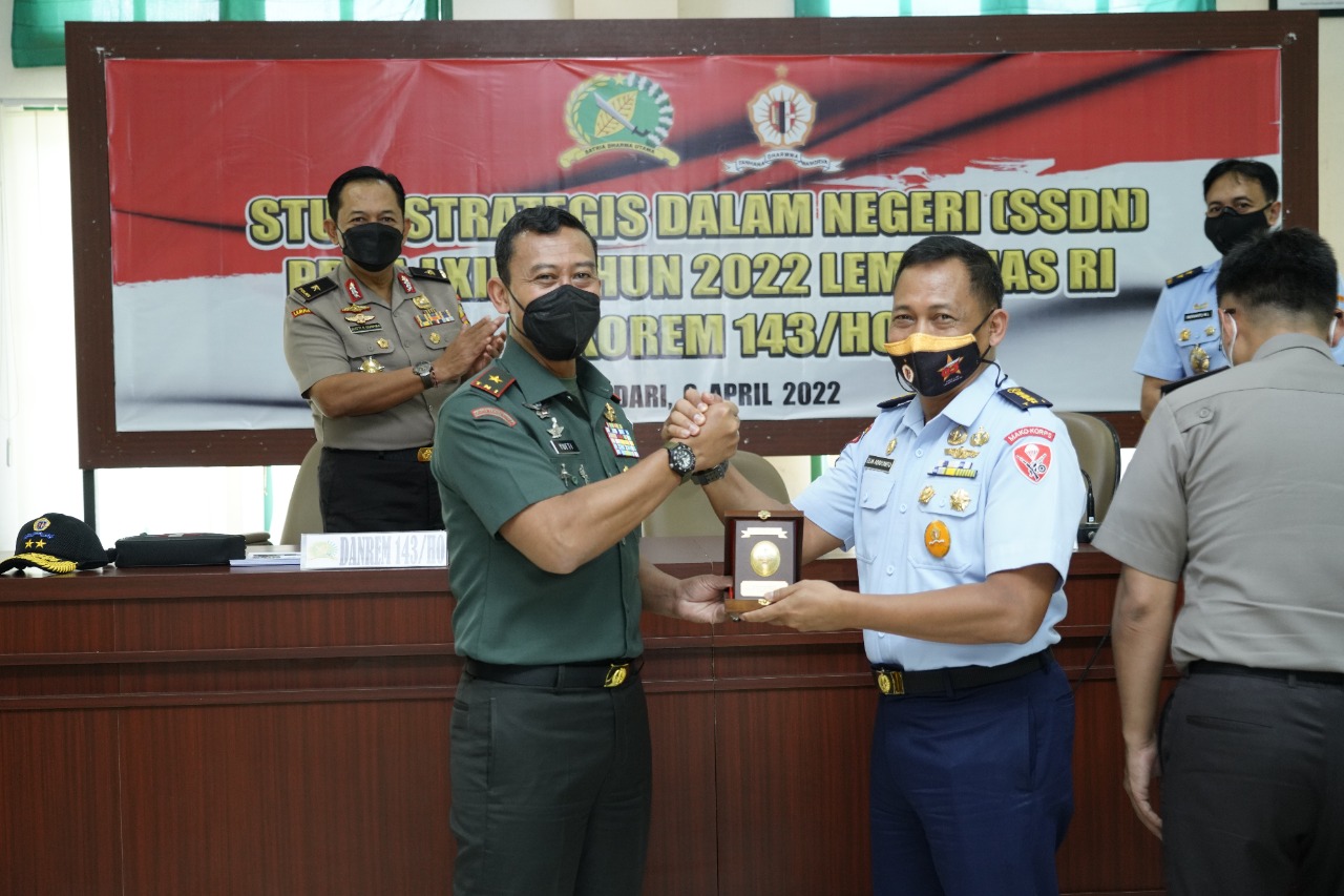 Komandan Korem 143/HO Brigjen TNI Yufti Senjay S.E.,M.Si, menerima siswa Studi Strategis Dalam Negeri ( SSDN) PPRA LXIII Lemhanas RI tahun 2022 di wilayah Kendari Sulawesi Tenggara, bertempat di Aula Tamalaki Makorem 143/HO, Rabu (6/04/2022).