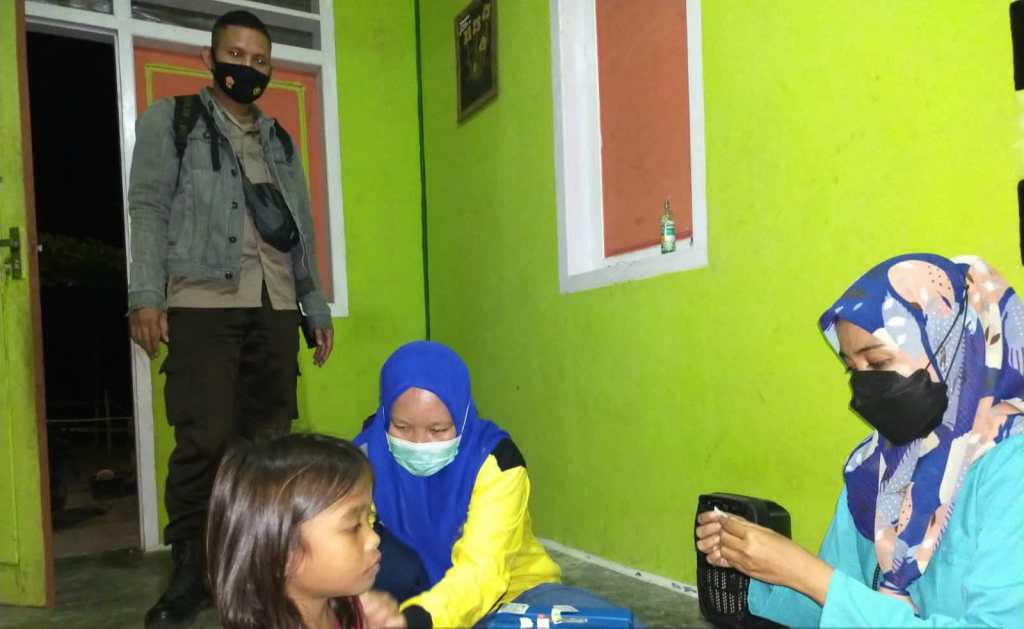 Sebagai bentuk sarana untuk mendekatkan diri dengan masyarakat, para Bhabinkamtibmas Polsek Dolo bersama tim PKM melaksanakan vaksin door to door vaksin ke warga di kec.dolo Barat, Dolo induk dan Dolo selatan sekaligus sosialisasi penerapan protokol kesehatan (prokes) kepada masyarakat guna mencegah penyebaran Covid-19, Selasa malam baru, 12/04/2022.