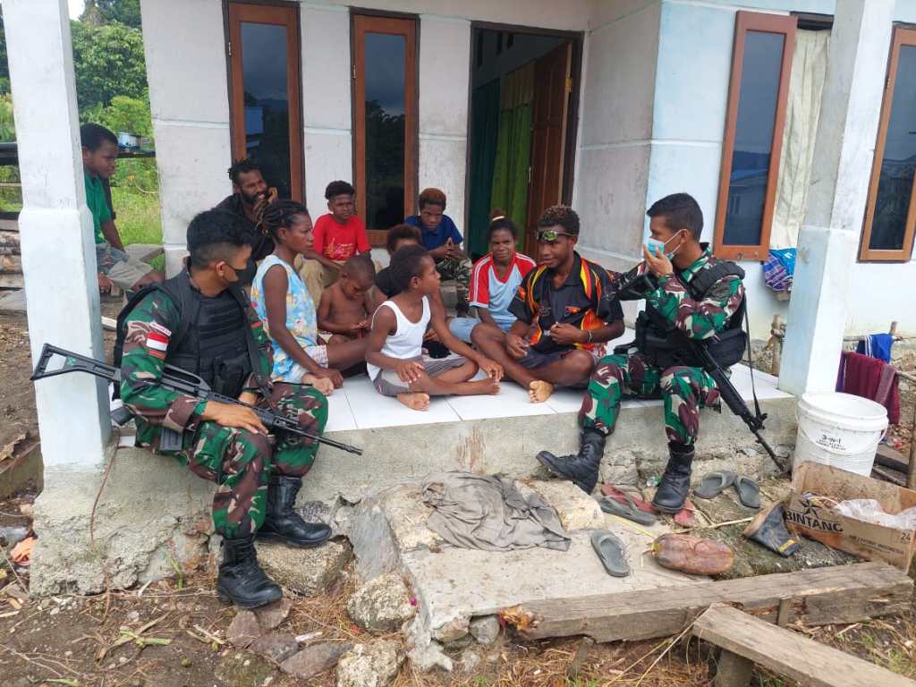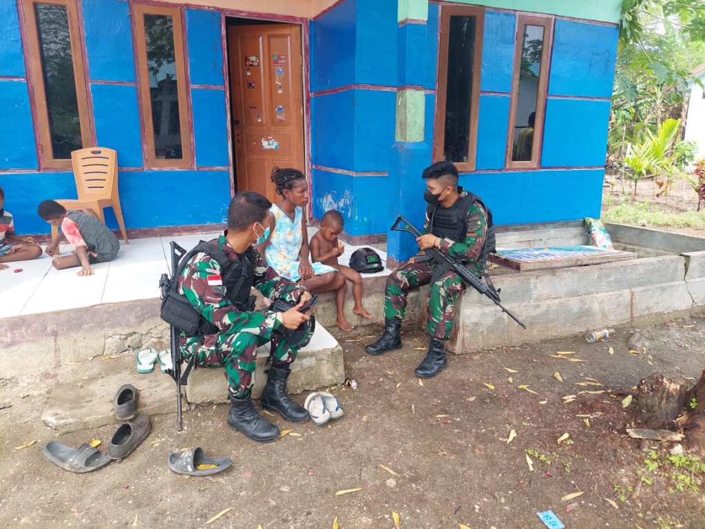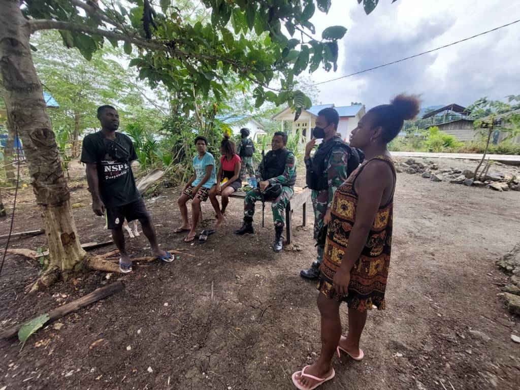 Guna mendukung terwujudnya Kemanunggalan TNI dengan Rakyat, Satgas Pamtas RI-PNG Yonif 711/Rks melaksanakan komunikasi sosial (Komsos) dengan berkunjung ke semua Elemen masyarakat, Pos Mosso Satgas Pamtas RI-PNG Yonif 711/Rks dengan berkunjung ke rumah-rumah warga, bertempat di Kampung Mosso, Distrik Muara Tami, Kota Jayapura, Kamis (14/04/2022).