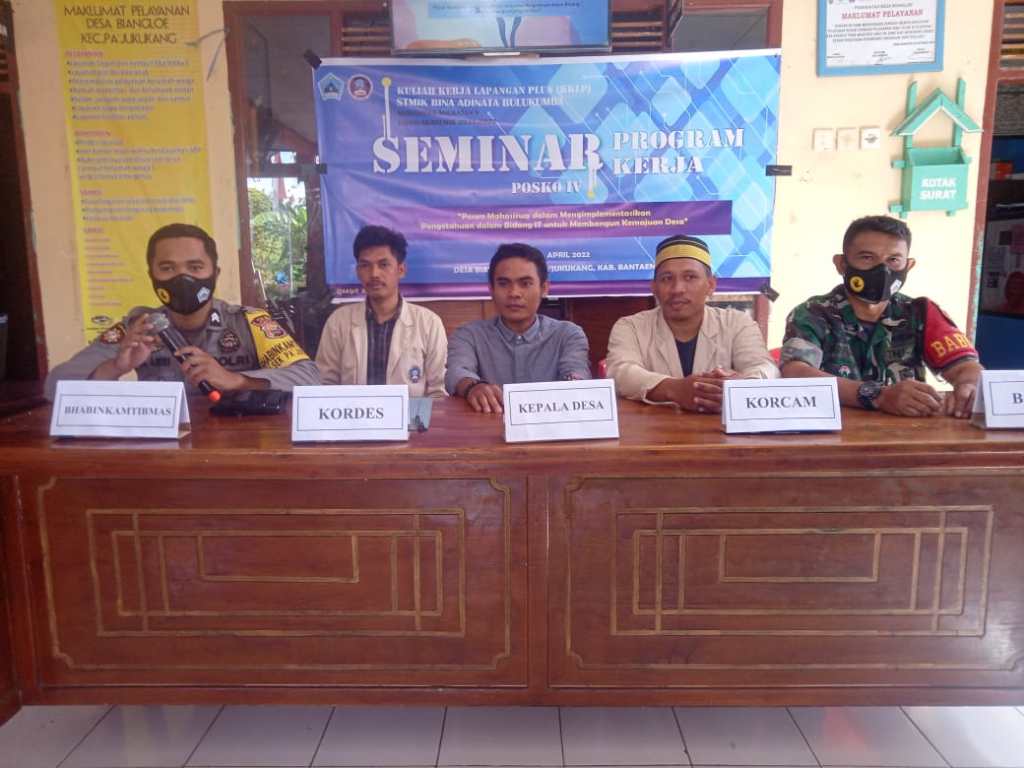 ANDI ABDUL PATTAH Selaku Koordinator Posko Desa Biangloe Menyampaikan Program Kerja Yang Akan Di Laksanakan Diantaranya Pelatihan Microsoft Office Desain Grafit Perbaikan Hardrare, Pembuatan Tongkat Bagi Penyandang Cacat Netra Pembuatan Plan Nama Desa, Jumat Bersih, Kegiatan Keagamaan, Olahraga Dan Seni, Serta Penyuluhan Terkait Dengan Penggunaan Informasi Dan Teknologi Dengan Baik Baji Remaja.