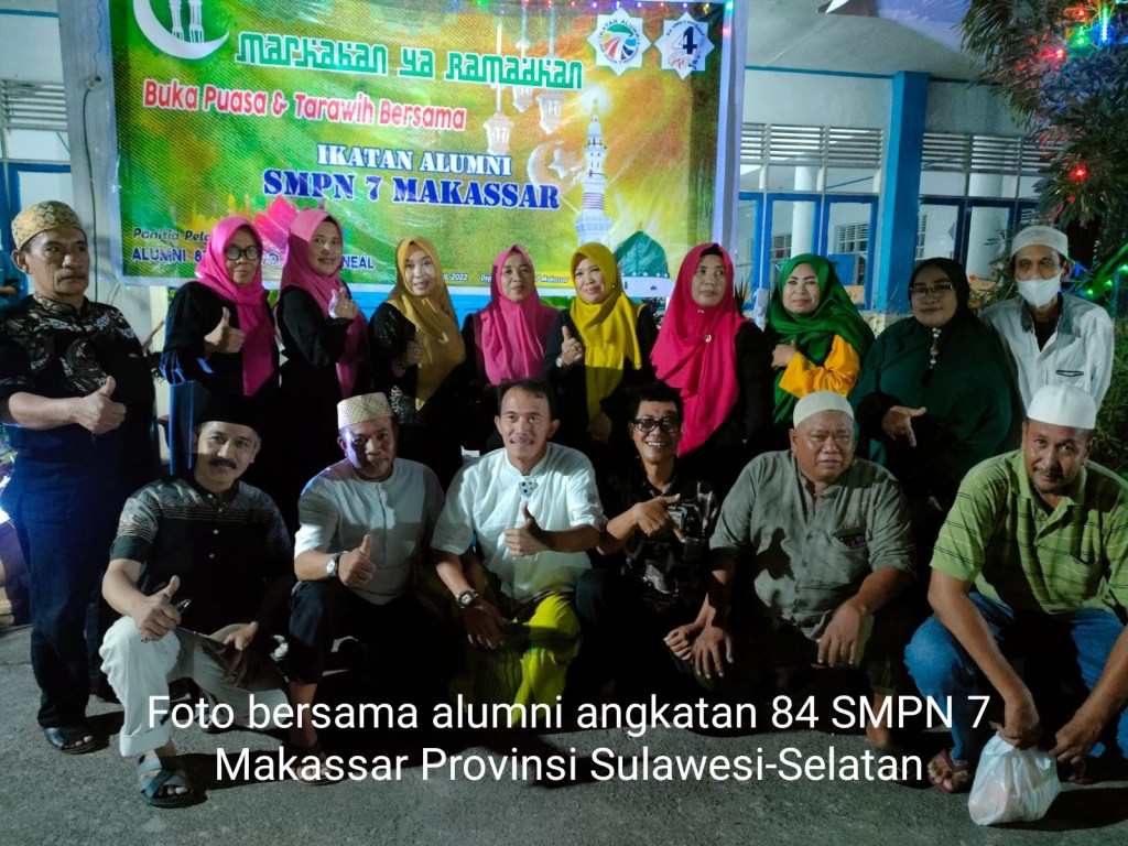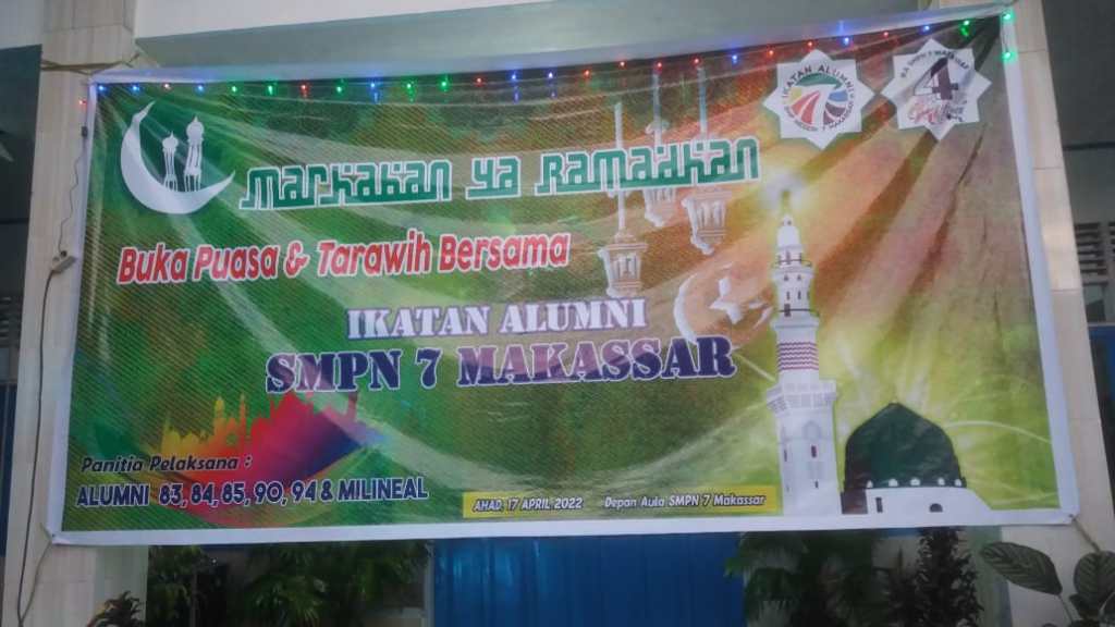 Dalam meraih suatu pahala yang sebayak-banyaknya di Bulan Ramadhan ini tentunya suatu kesempatan untuk diraih. Olehnya itu momen Ramadhan yang sisa tinggal beberapa hari lagi ini di mamfaatkan Ikatan Alumni Sekolah Menengah Pertama Negeri 7 Makassar Provinsi Sulawesi-Selatan selenggarakan buka dan tarwih bersama di lokasi sekolah tersebut depan Aula ahad 17- April-2022.