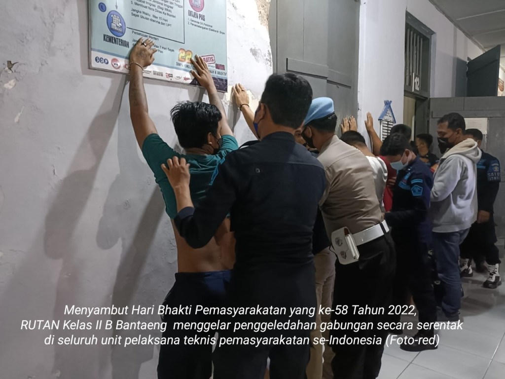 Dalam rangka menyambut Hari Bhakti Pemasyarakatan yang ke – 58 Tahun 2022, berbagai rangkaian acara diselenggarakan oleh Rumah Tahanan Negara (RUTAN) Kelas II B Bantaeng, salah satunya dengan menggelar penggeledahan gabungan yang secara serentak dilaksanakan di seluruh unit pelaksana teknis pemasyarakatan se – Indonesia. Selasa (19/04) pukul 20:30 WITA
