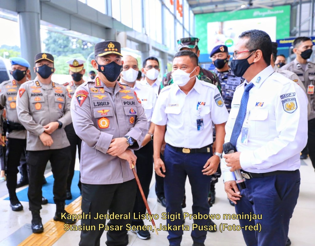 Kapolri Jenderal Listyo Sigit Prabowo meninjau Stasiun Pasar Senen, Jakarta Pusat, dalam rangka mengecek kesiapan pelaksanaan pengamanan arus mudik Hari Raya Idul Fitri atau Lebaran tahun 2022.