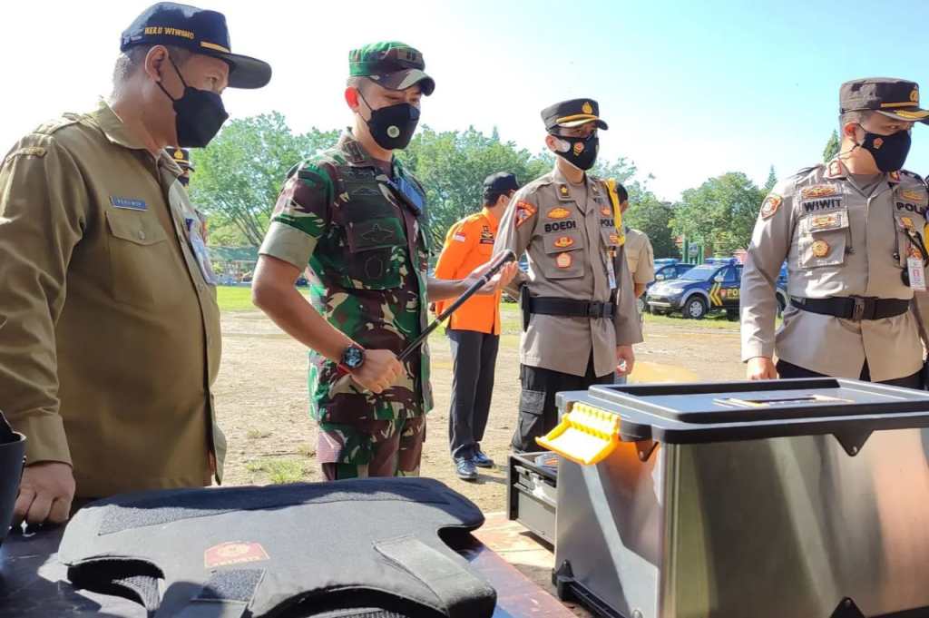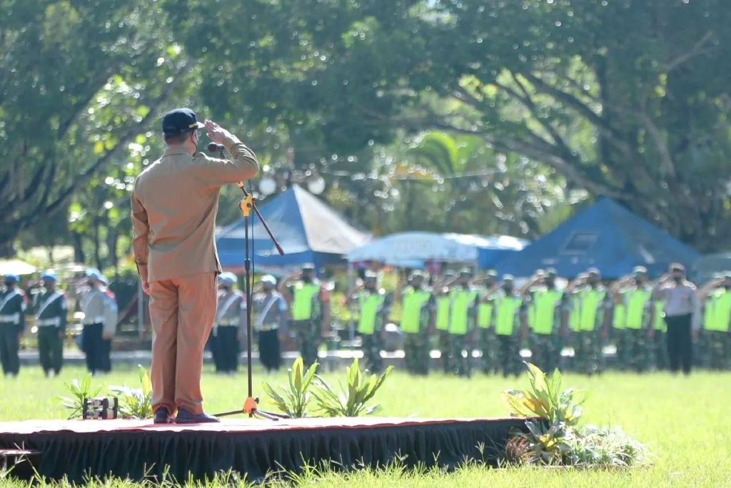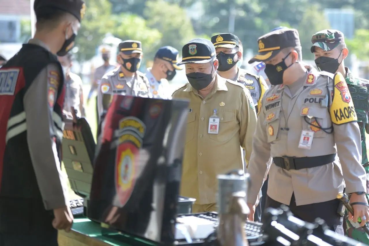 Sekretaris Daerah Pacitan Heru Wiwoho, Jumat (22/04) memimpin Apel Gelar Pasukan Operasi “Ketupat Semeru 2022” dalam rangka pengamanan Hari Raya Idul Fitri 1443 H di Alun-alun kota Pacitan. Hadir dalam kegiatan tersebut Forkopimda Kabupaten serta Kepala perangkat daerah terkait