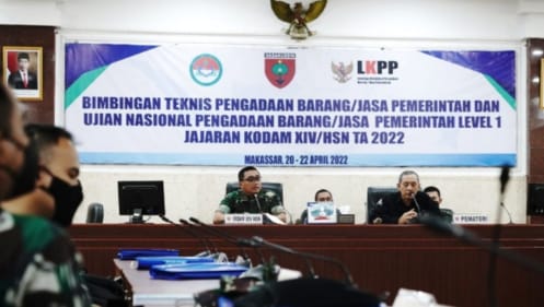 Kodam XIV/Hasanuddin menggelar kegiatan Bimbingan Teknis (Bimtek) Pengadaan Barang/Jasa Pemerintah dan Ujian Nasional Pengadaan Barang/Jasa Pemerintah, bertempat di Ruang Bina Yudha Makodam, Jl. Urip Sumoharjo Makassar. Jumat (22/04/2022)