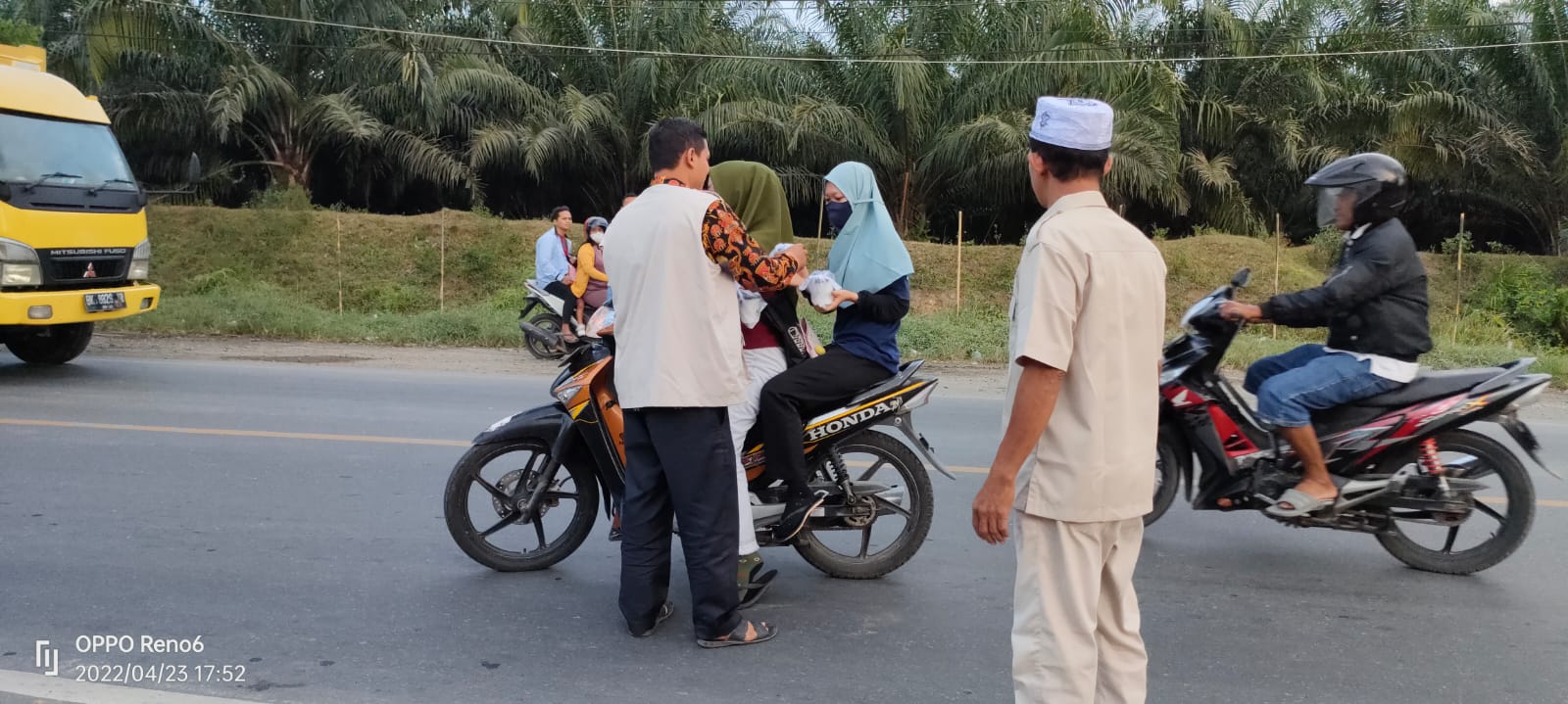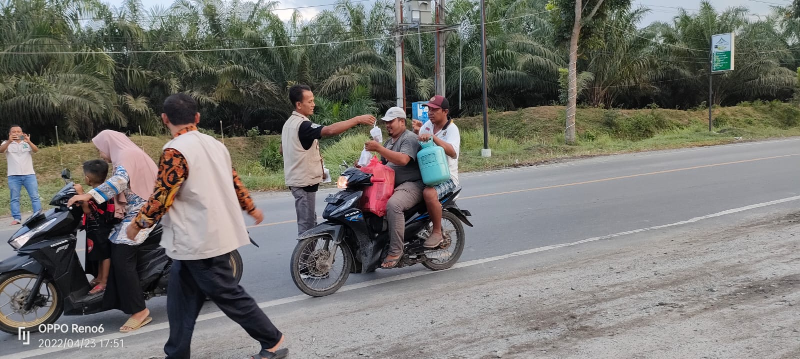 Ketua KSJ Kabupaten Batu Bara Zul Irfan Hasibuan bersama relawan KSJ berbagi 500 takjil di dua lokasi, Desa Binjai Baru dan Desa Petatal.