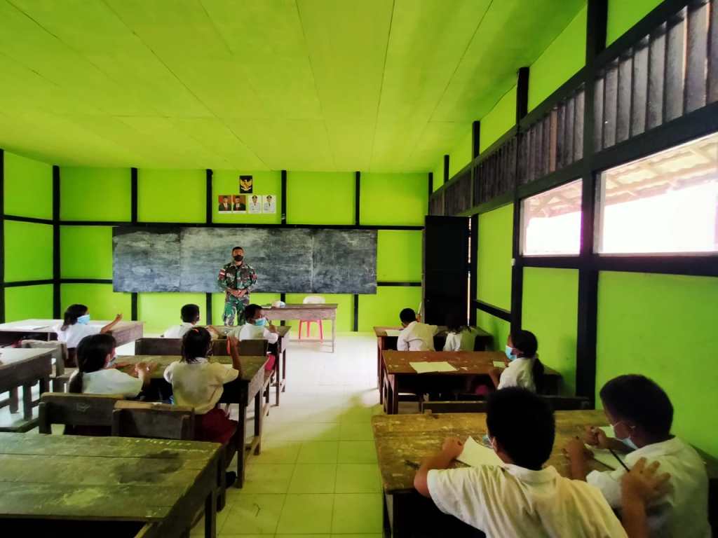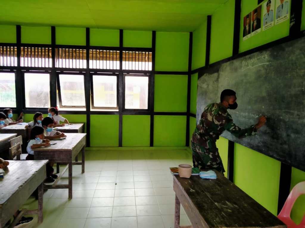 Proses belajar mengajar dilakukan oleh 3 orang personel Pos Gunung Anggas di pimpin Sertu Bangun Samudra, yang mengajar mata pelajaran matematika bagi siswa-siswi kelas V.