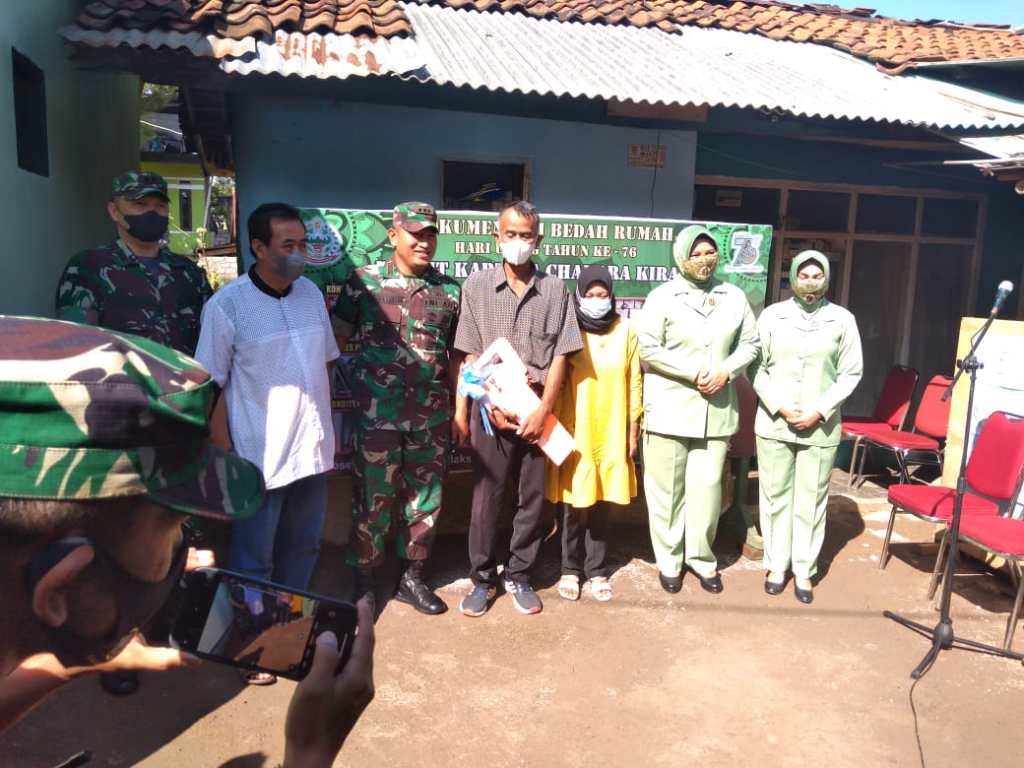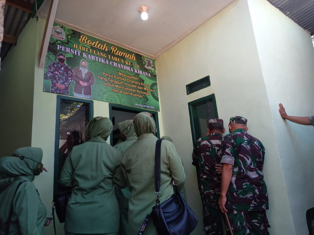 Dalam rangka memperingati HUT Ke-76 Persit Kartika Chandra Kirana Tahun 2022, Ketua Persit KCK Cabang X Rindam PD III/Siliwangi Ny. Diah Pravana KM Lukman Hakim dengan didampingi oleh Danrindam III/Slw Kolonel Inf Lukman Hakim menghadiri peresmian rumah salah seorang warga yang masuk dalam program bedah rumah dari Rindam lll/Slw. Sabtu (23/4).