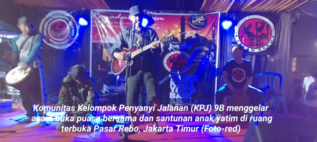 Komunitas Kelompok Penyanyi Jalanan (KPJ) 9B menggelar acara buka puasa bersama dan santunan anak yatim di ruang terbuka Pasar Rebo, Jakarta Timur, Sabtu (23/4/2022)
