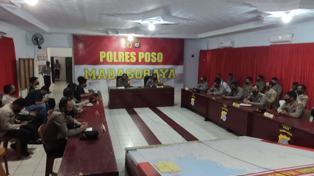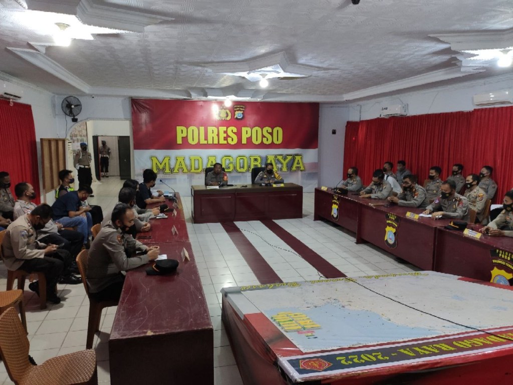 Menjelang diberlakukannya Operasi Ketupat Tinombala 2022, Polres Poso menggelar Latihan Pra Operasi di Gedung Aula Andisapa Sudirman Polres Poso, Selasa (26/4/2022)