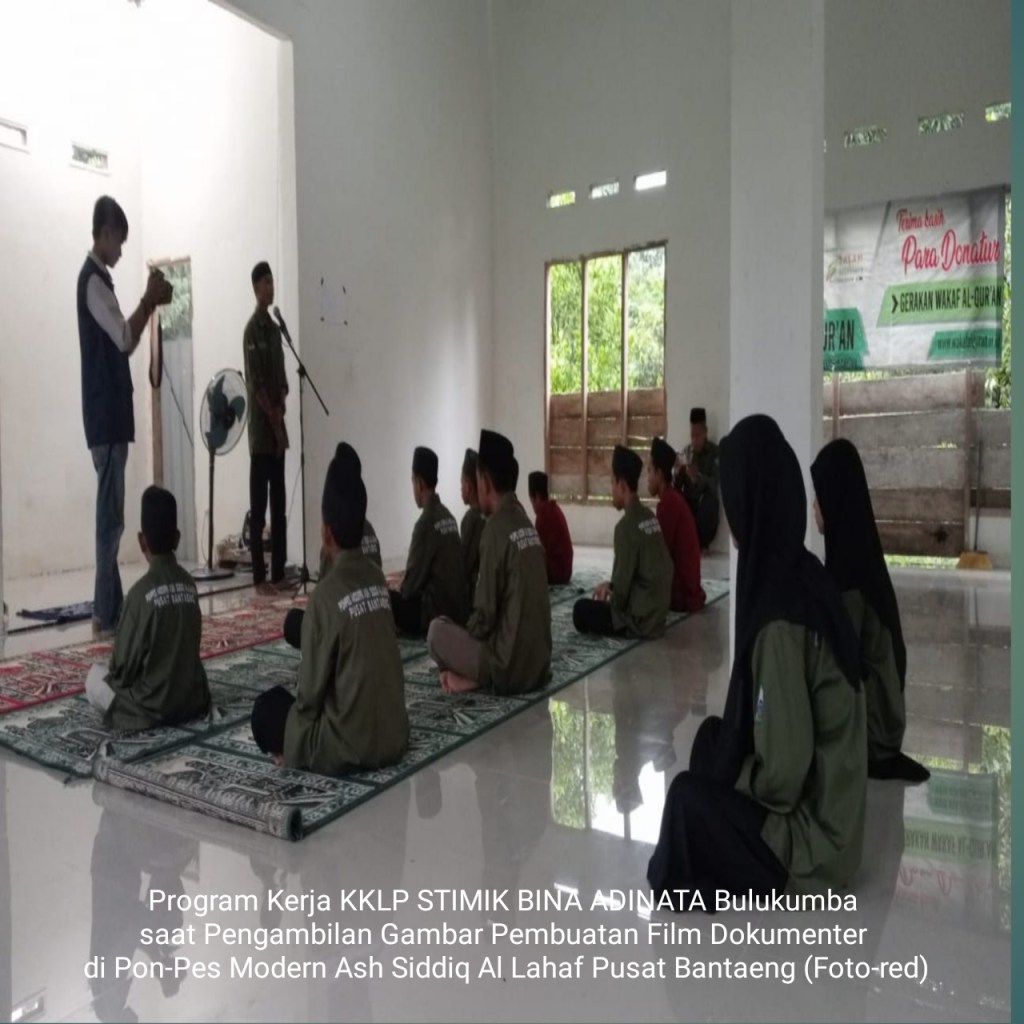 Program Kerja KKLP STIMIK BINA ADINATA Bulukumba Yang Sedang Berlangsung Saat Ini Adalah Pembuatan Film Dokumenter Yang Mana Prokes Tersebut Berfokus Pada Pon-Pes Modern Ash Siddiq Al Lahaf Pusat Bantaeng.