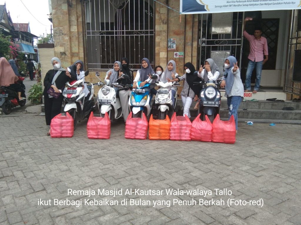 Ketua Remaja Masjid Al-Kautsar Kelurahan Walaya-walaya Kecamatan Tallo Makassar Sdra Leman Panjang Lewa sapaan akrab Lemang Bersama para remaja putra dan putri lakukan kegiatan Baksos yakni berbagi takjil kepada pengguna jalan dan warga masyarakat di sekitar Masjid Al-Kautsar dan sekitar 100 DOS Makanan takjil di bagikan sore ini. Ahad, 21/04/2022