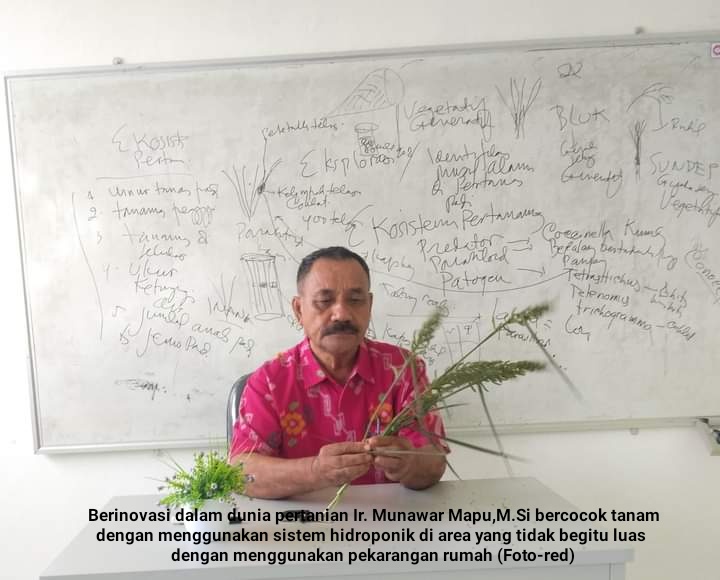 Berinovasi dalam dunia pertanian Ir. Munawar Mapu,M.Si bercocok tanam dengan menggunakan sistem hidroponik di area yang tidak begitu luas dengan menggunakan pekarangan rumah.