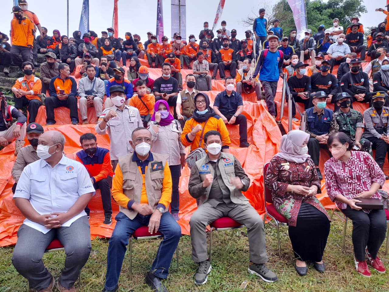 Puncak peringatan Hari Kesiapsiagaan Bencana (HKB) 2022 digelar di Teras Merapi, Balerante, Jogjakarta, Selasa, 26 April 2022. Pengurus Sekber Relawan Penanggulangan Bencana (SRPB) Jawa Timur ikut hadir dalam acara ini.