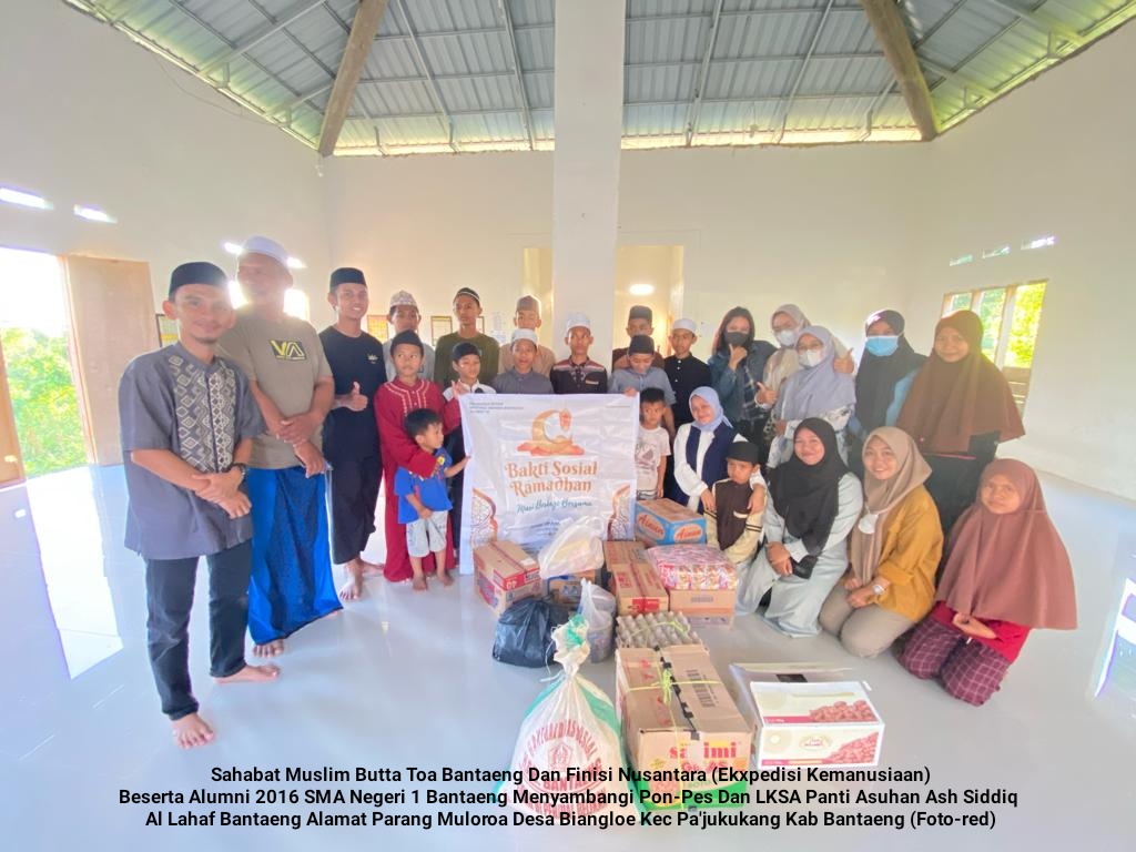 Beserta Alumni 2016 SMA Negeri 1 Bantaeng Menyambangi Pon-Pes Dan LKSA Panti Asuhan Ash Siddiq Al Lahaf Bantaeng Alamat Parang Muloroa Desa Biangloe Kec Pa’jukukang Kab Bantaeng.