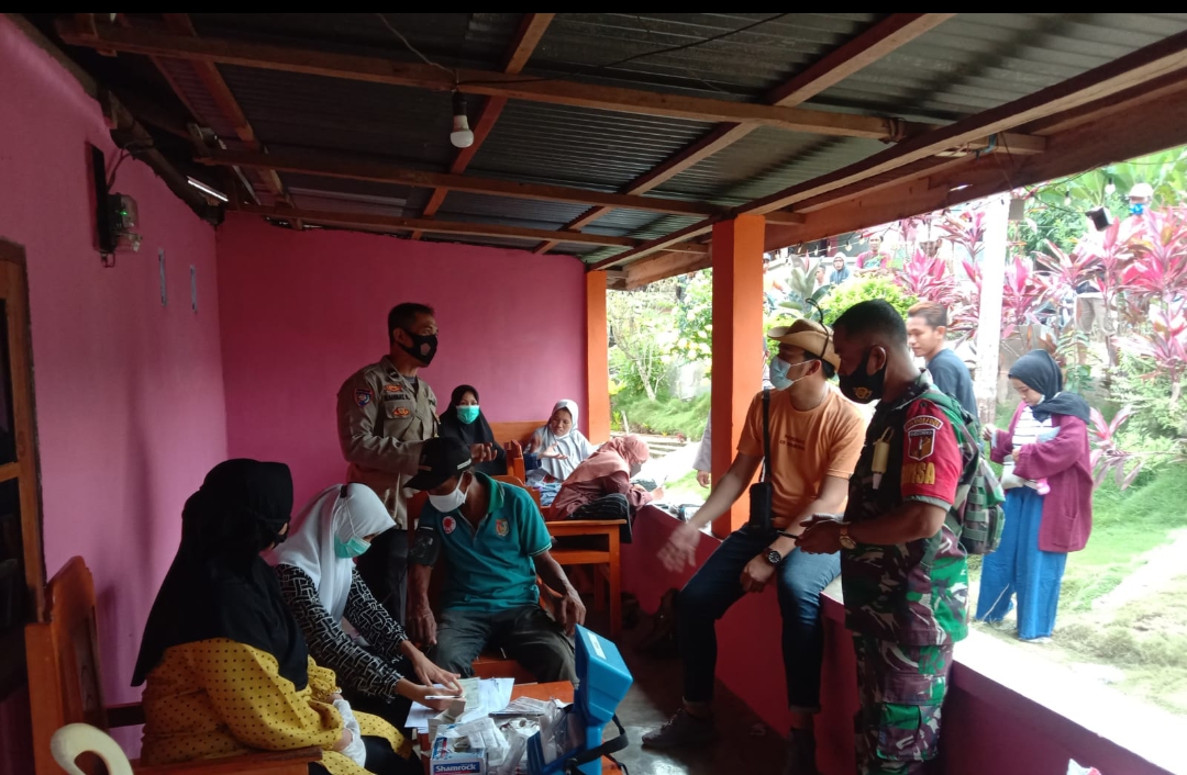 Bripka Bintang Bersama Serka Mahmud bersama – sama memberikan himbauan kepada warga masyarakat untuk melaksanakan vaksinasi bahwa vaksinasi ini dilaksanakan dengan tujuan meningkatkan HERD IMMUNITY atau kekebalan tubuh dalam komunitas lingkungan sekitar kita terutama untuk Vaksin Dosis ke 3 Atau Booster, Lanjut, kegiatan Vaksinasi dosis 1, 2 Dan 3 (Booster) yang berlangsung di Desa Doda Tepat nya Di Rumah Bapak Amos tetap menerapkan protokol kesehatan ketat.