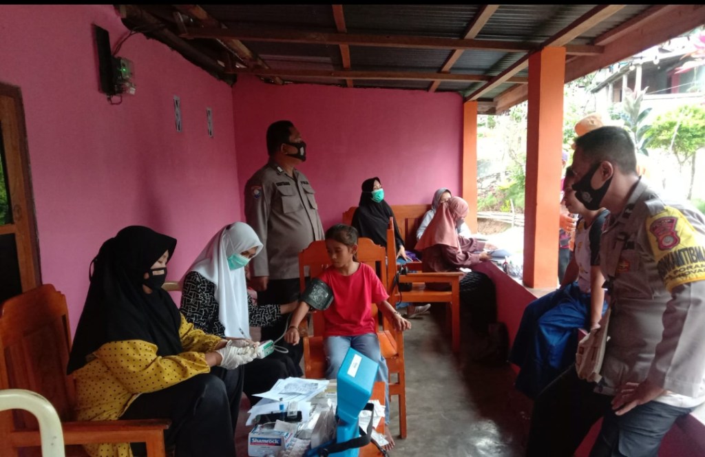 Dalam tugas keseharian seorang bhabinkamtibmas yakni menyambangi warga desa binaannya dan memantau setiap kegiatan yang terlaksana di wilayah binaannya termasuk pelaksanaan pemberian vaksinisasi bagi warga di desa binaan.