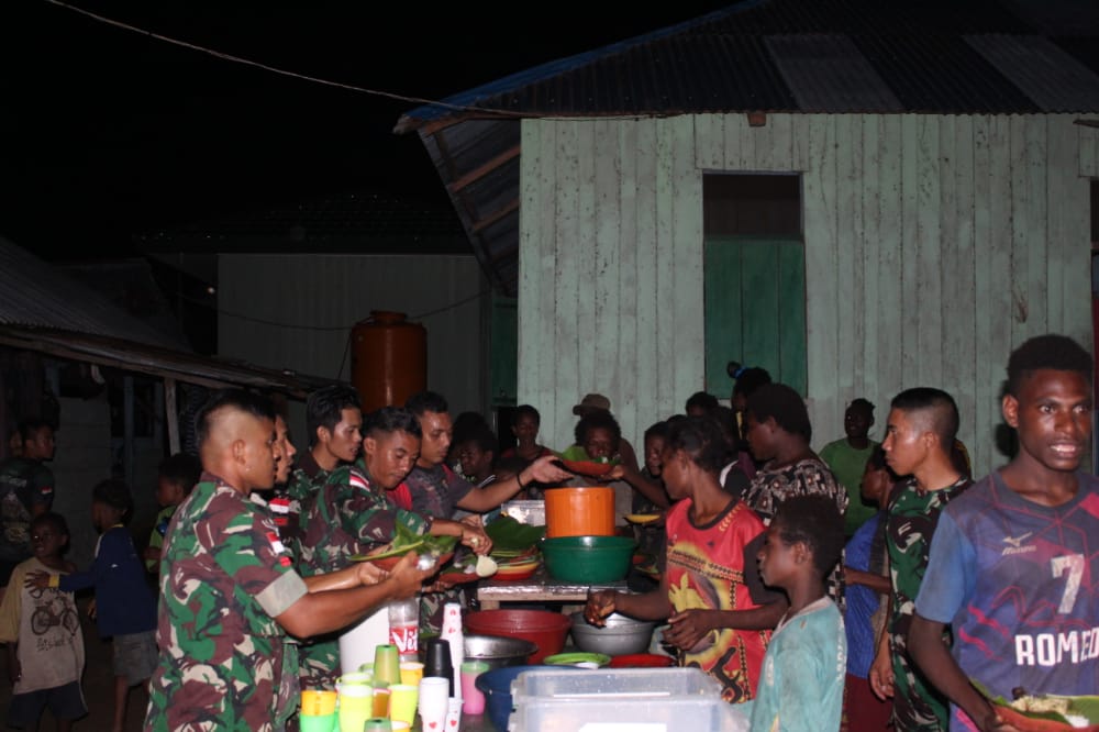 Personel SSK II Jajaran yang dipimpin oleh Kapten Inf Suryanto Marpaung mengadakan kegiatan Buka Bersama yang diadakan di Pos Yakyu Kampung Rawabiru Distrik Sota Kab. Merauke. 30/04/2022